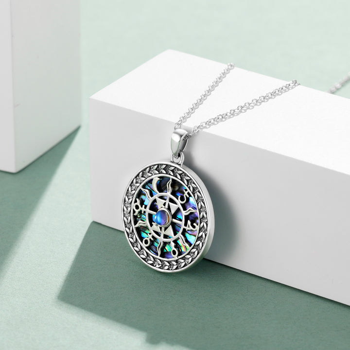 Sterling Silver Round Moonstone & Abalone Shellfish Celtic Knot Pendant Necklace