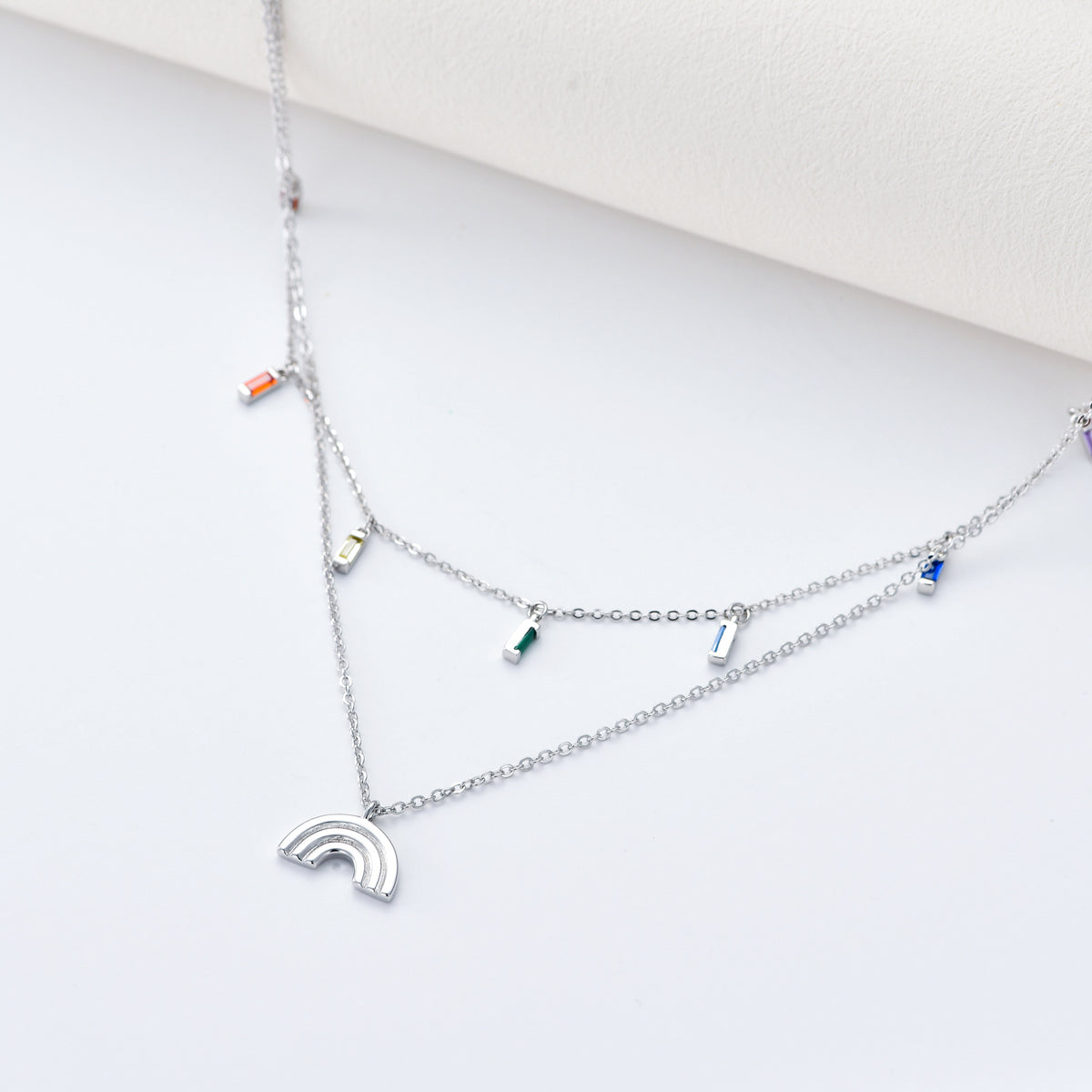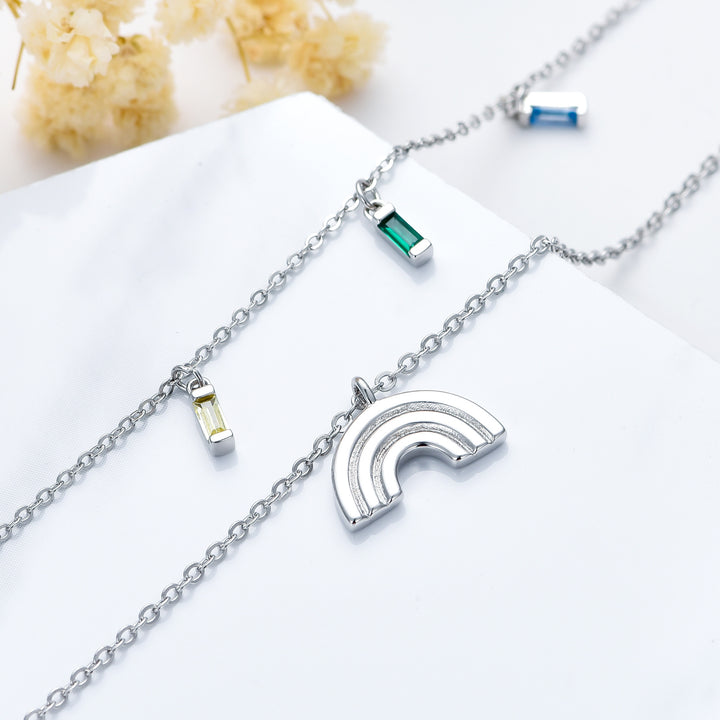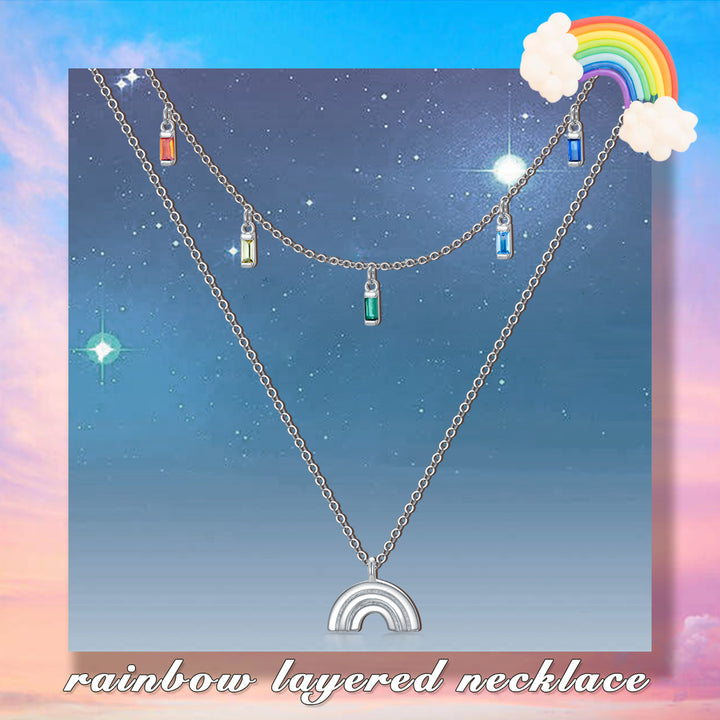 Sterling Silver Zircon Rainbow Layered Necklace