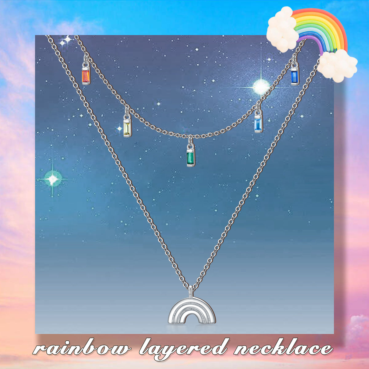 This Sterling Silver Rainbow Zircon Layered Necklace by YFN adds playful sophistication to any jewelry collection with its vibrant multicolor sparkle. Each layer showcases high-quality zircon stones arranged in a stunning rainbow palette, catching light with captivating brilliance. Crafted in sterling silver and enhanced with white-gold plating, the necklace offers lasting shine and hypoallergenic comfort. Designed for women who love expressive yet elegant accessories, it pairs effortlessly with both casual and dressy outfits. Its layered silhouette provides dimension and versatility, making it a standout piece that celebrates color, joy, and personal style.