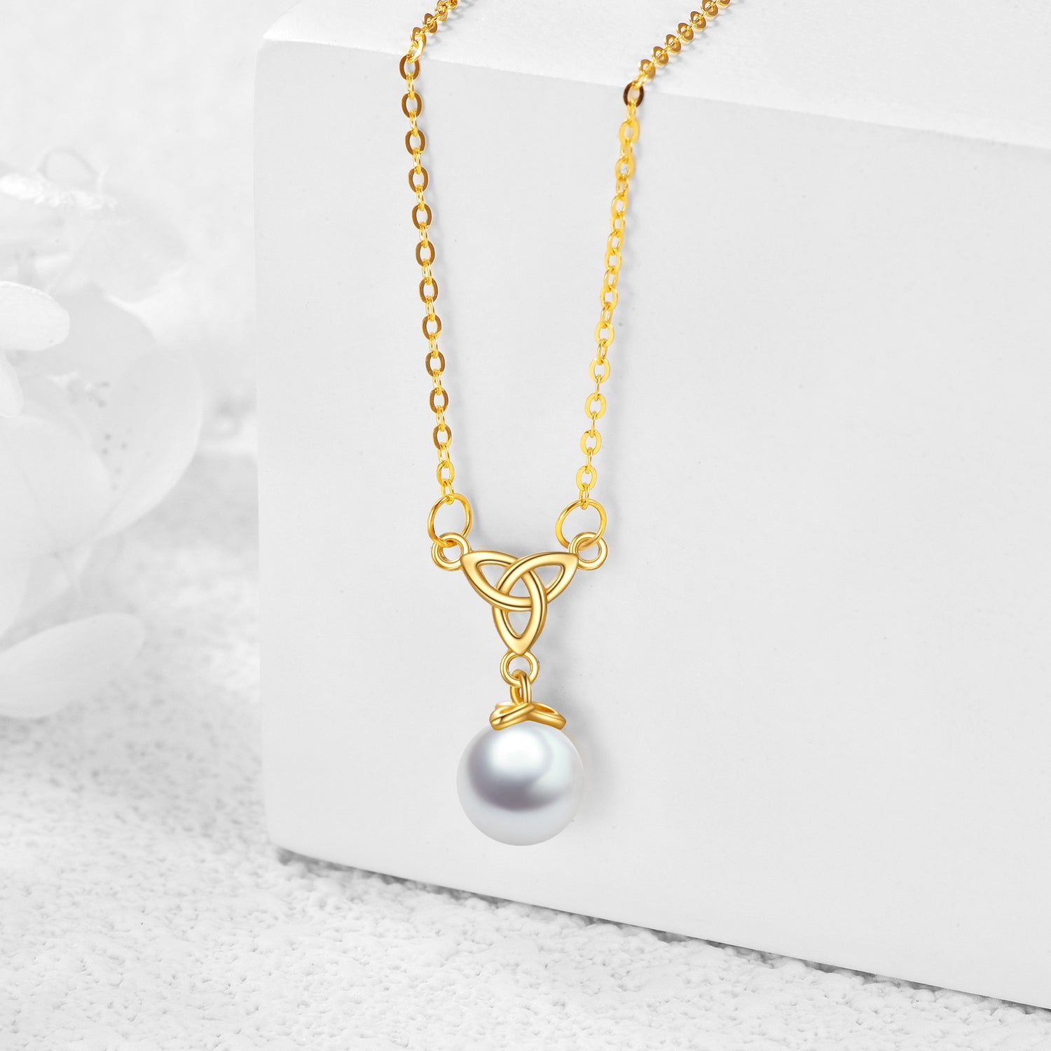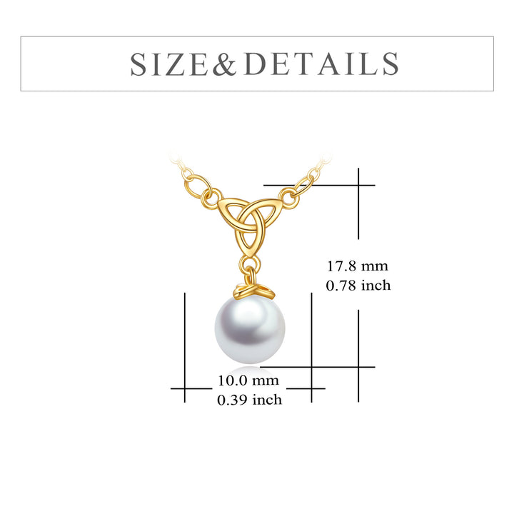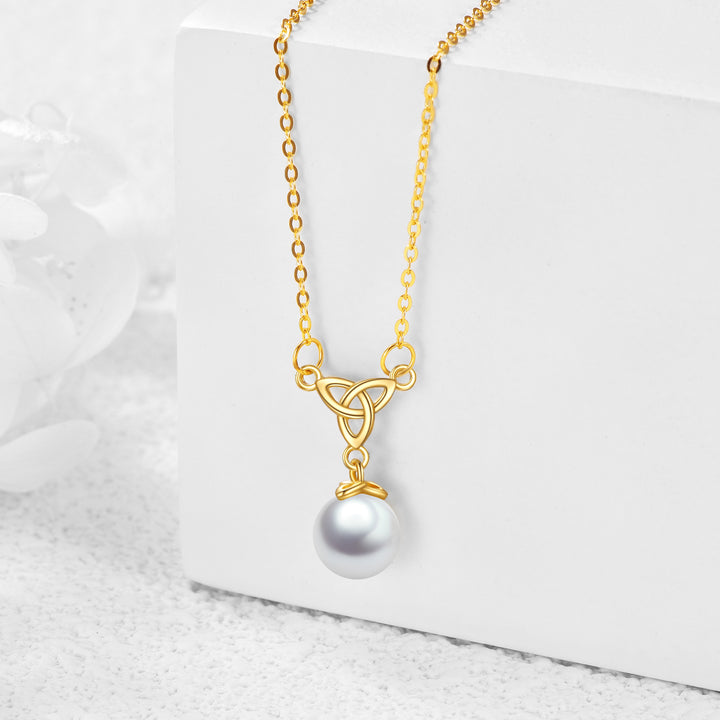 14K Gold Circular Shaped Pearl Celtic Knot Pendant Necklace