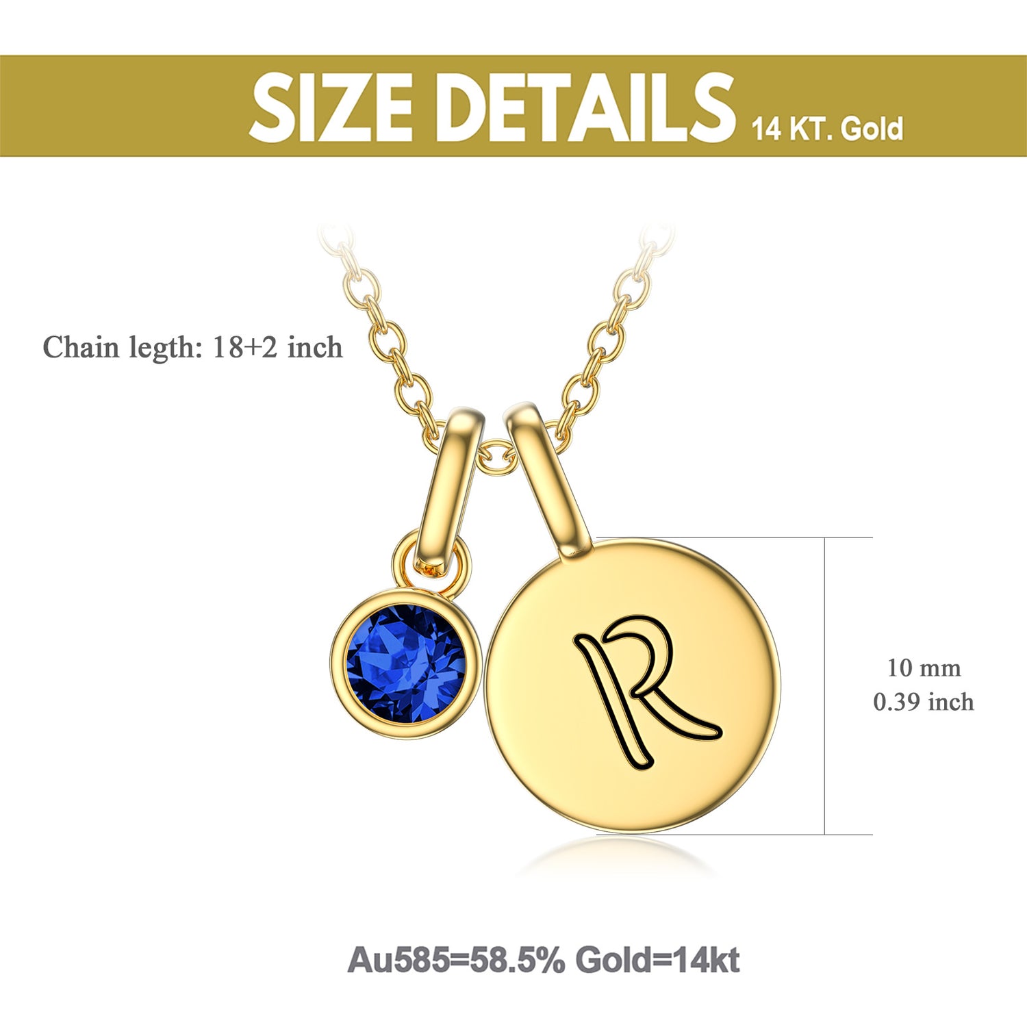 18K Gold Circular Shaped Cubic Zirconia Personalized Birthstone Pendant Necklace