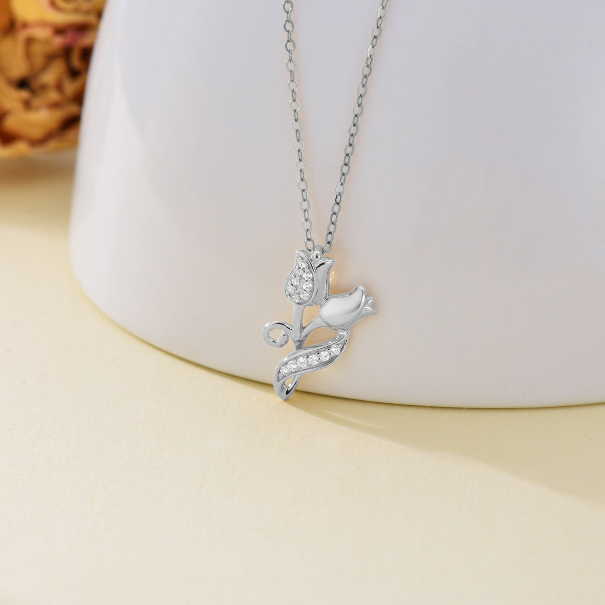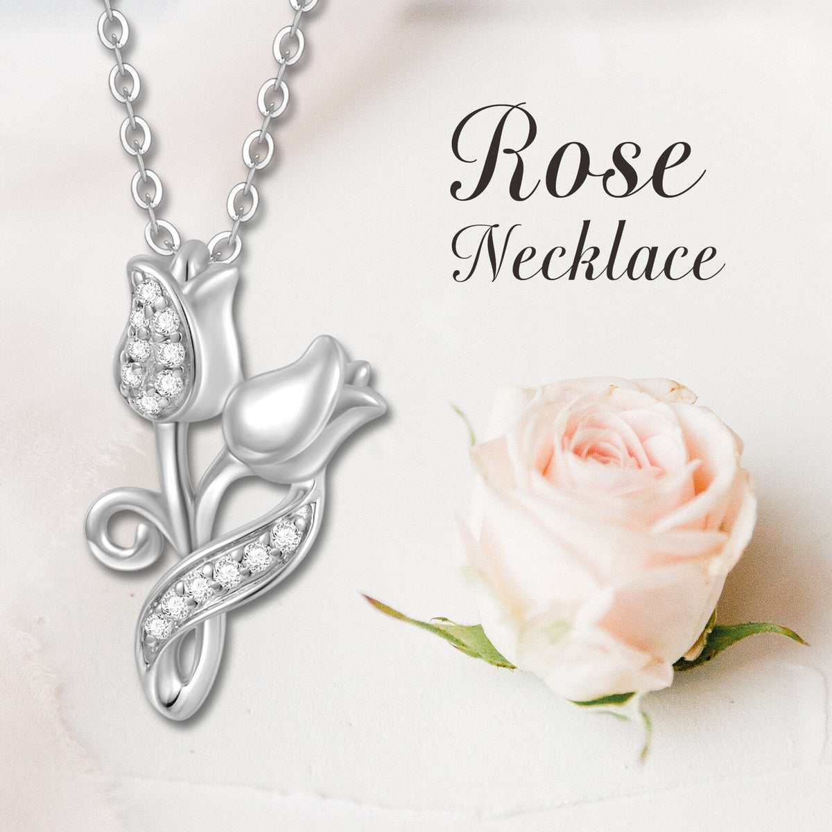 This 14K White Gold Cubic Zirconia Rose Pendant Necklace by YFN is a must-have addition for women who appreciate timeless beauty. This exquisite 14K Gold Pendant Necklace is available in Yellow or White Gold, elegantly designed in the shape of a Rose and adorned with sparkling Cubic Zirconia.