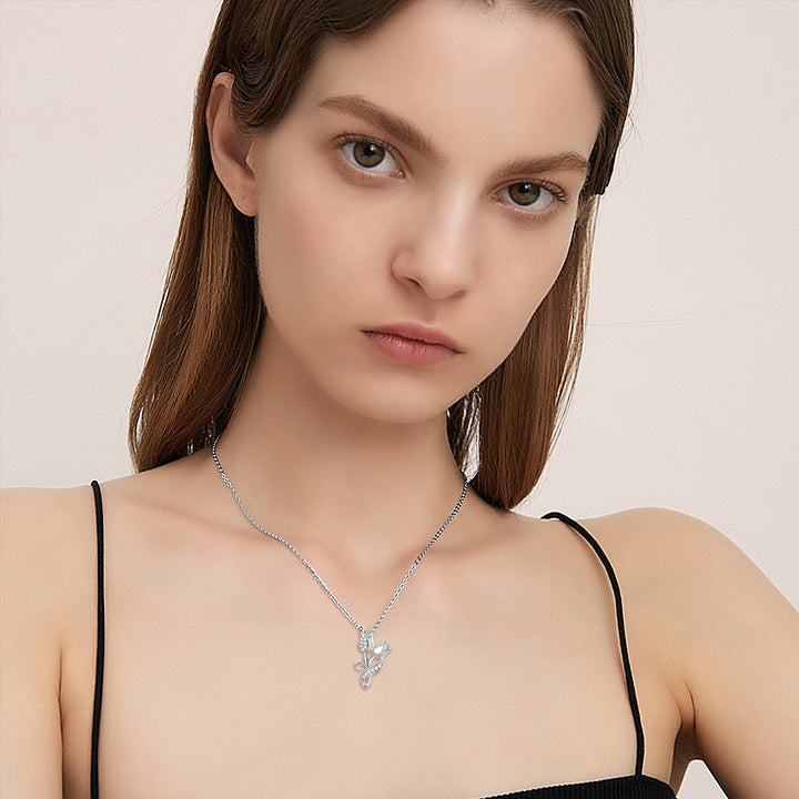 Crafted from 14K Gold (Yellow/White Gold options), this Pendant Necklace is elegantly designed as a Rose and adorned with sparkling Cubic Zirconia.