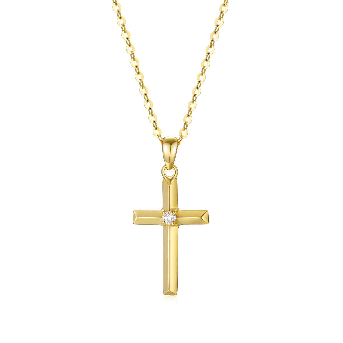 This 14K Gold Moissanite Cross Pendant Necklace by YFN is designed exclusively for women who appreciate the blend of classic and contemporary style. Crafted from high-quality 14K gold, this stunning pendant necklace showcases a beautifully designed cross set with a dazzling moissanite gemstone. It offers an affordable yet luxurious alternative to diamonds, perfect for daily wear or special occasions, making it a versatile and elegant addition to any jewelry collection.