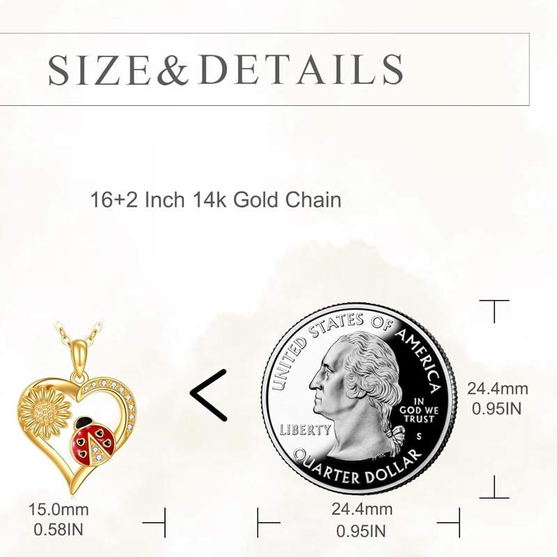 14K Gold Ladybug Wildflowers Heart Necklace for Women