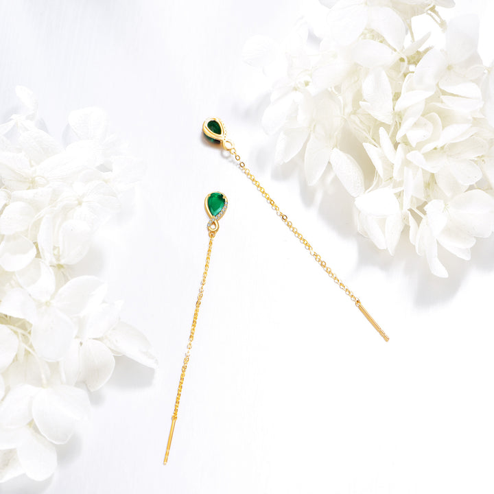 These Drop Earrings are crafted from 14K Gold, Designed with Sparkling Cubic Zirconia and an Elegant Infinity Symbol.