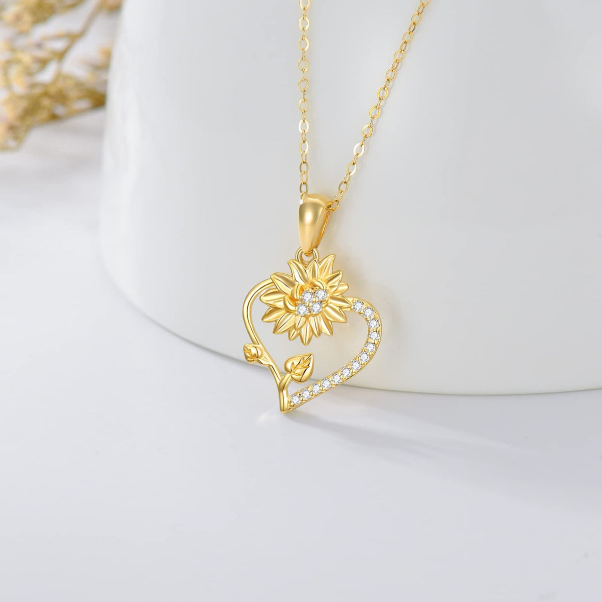 This 14K Gold Cubic Zirconia Sunflower & Heart Pendant Necklace by YFN is designed for women who appreciate timeless beauty and radiant sophistication. This exquisite Pendant Necklace is crafted from luxurious 14K Gold and features sparkling Cubic Zirconia stones set in the elegant Sunflower and Heart Motifs. This versatile piece adds a touch of glamour and warmth to any ensemble, making it ideal for both everyday wear and special occasions to make a unique statement.