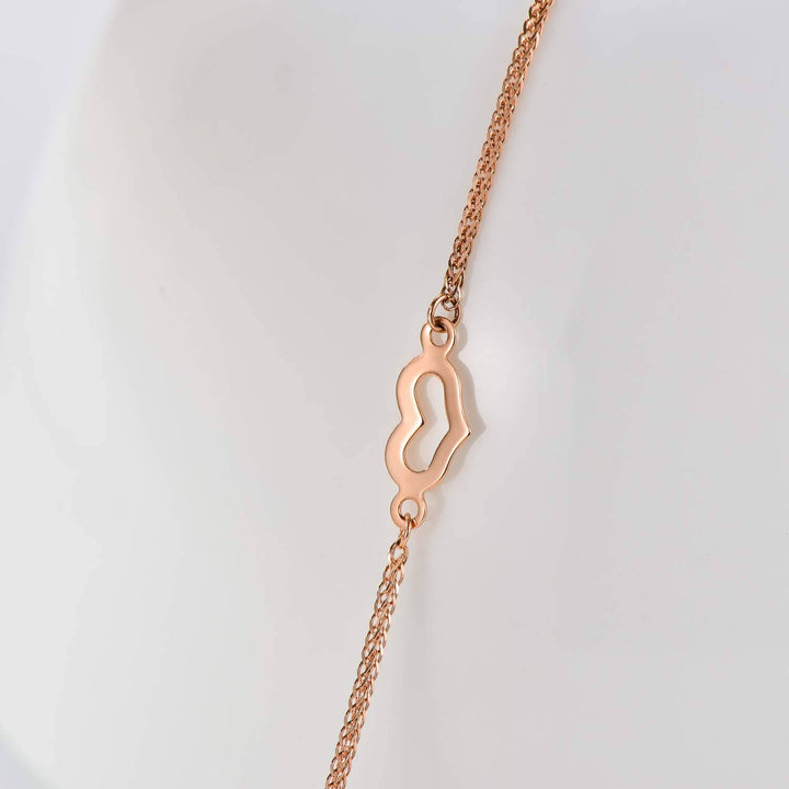 This 18K Rose Gold Heart Charm Bracelet by YFN is a stone-free, luxurious accessory that exudes timeless elegance and subtle sophistication for women. Crafted from premium 18K rose gold, this heart Charm bracelet offers a minimalist yet refined appearance, free from stones. It is perfect for any occasion, serving as a statement of enduring style and grace for women who appreciate understated luxury.