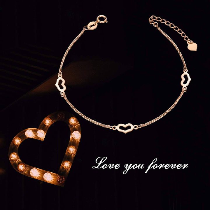 18K Rose Gold Heart Charm Bracelet