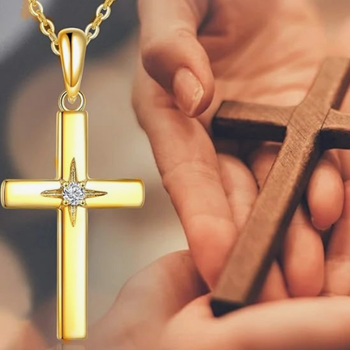 This Women's Pendant Necklace is crafted from Durable 14K Gold, featuring a Cross Design with a Dazzling Moissanite Centerpiece.