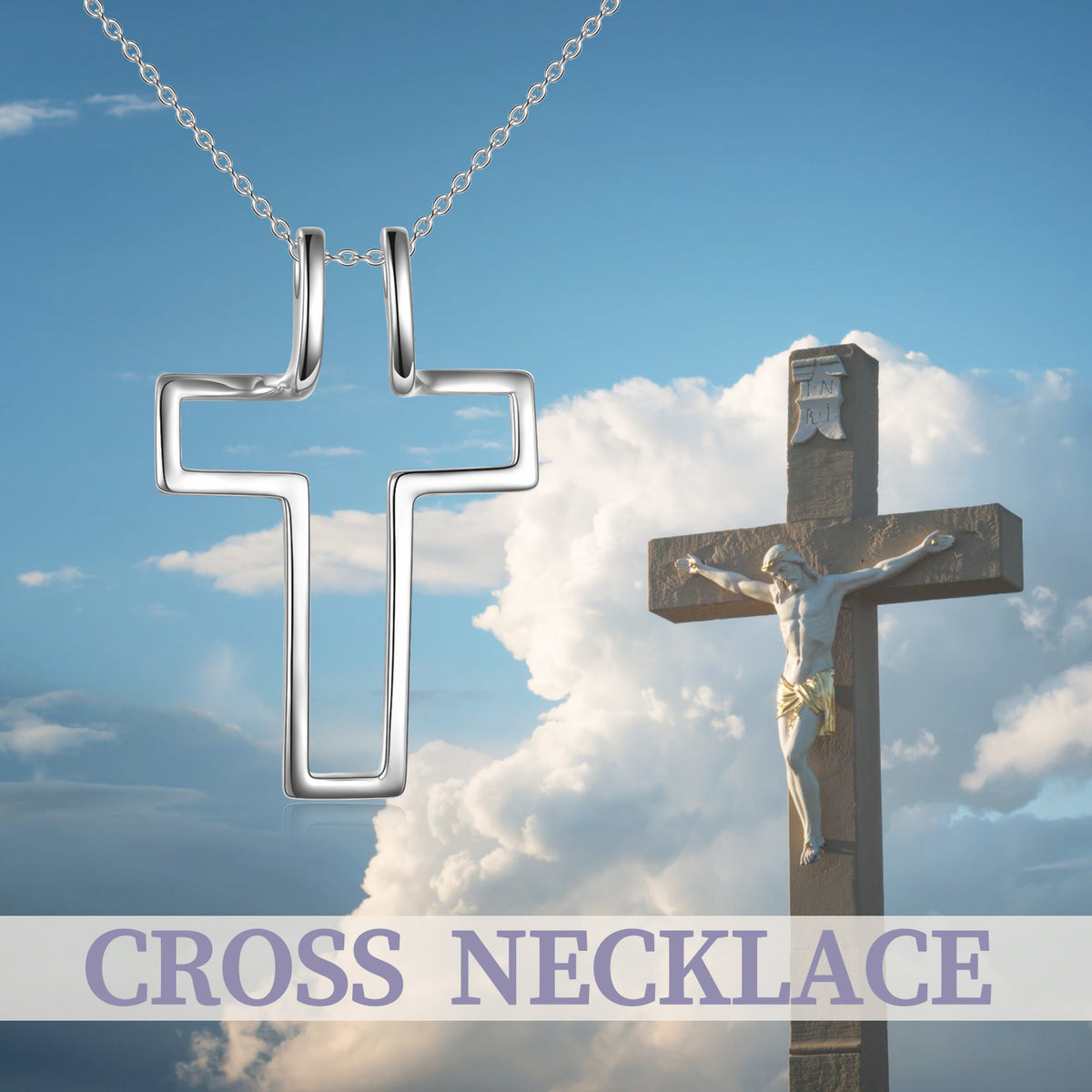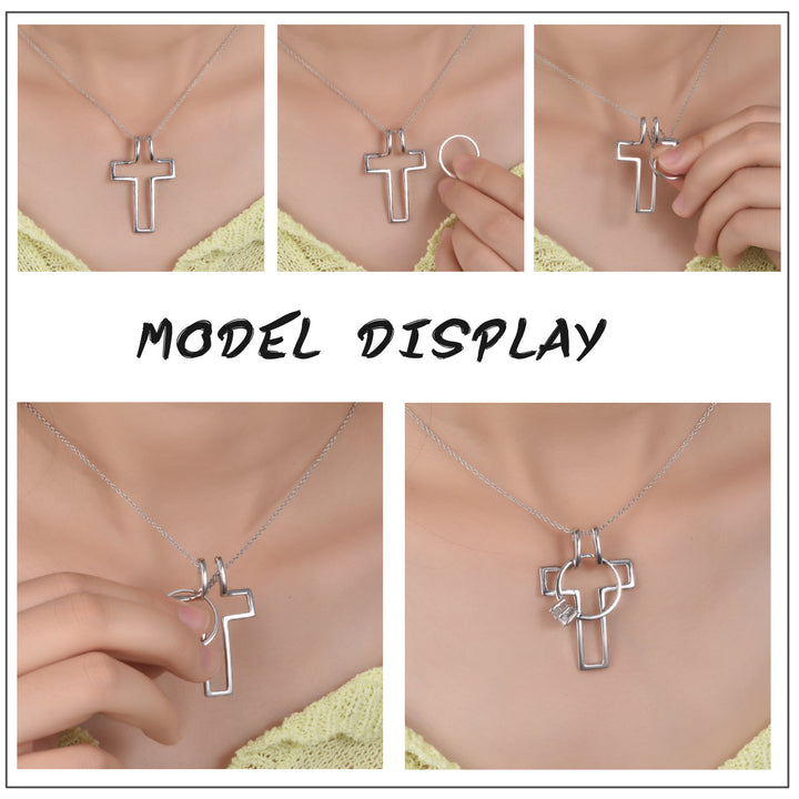 Sterling Silver Cross & Ring Holder Pendant Necklace