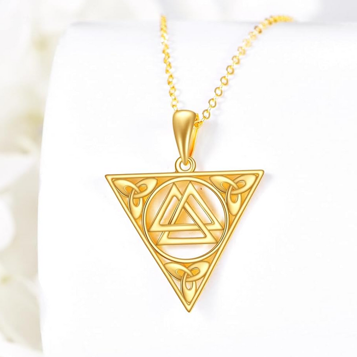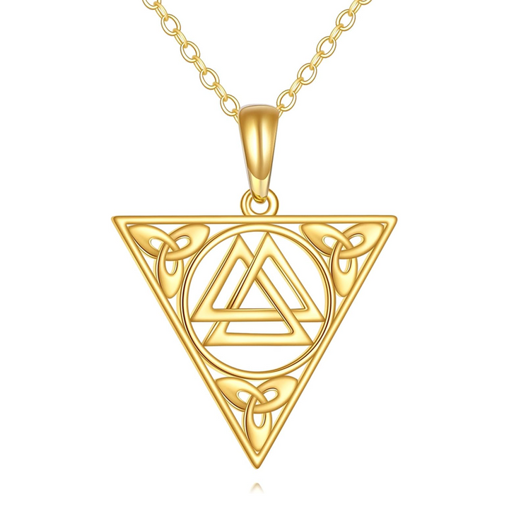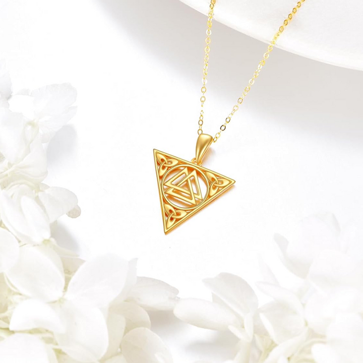 14K Gold Celtic Knot & Triangle Necklace for Women