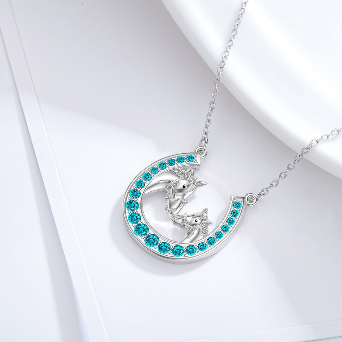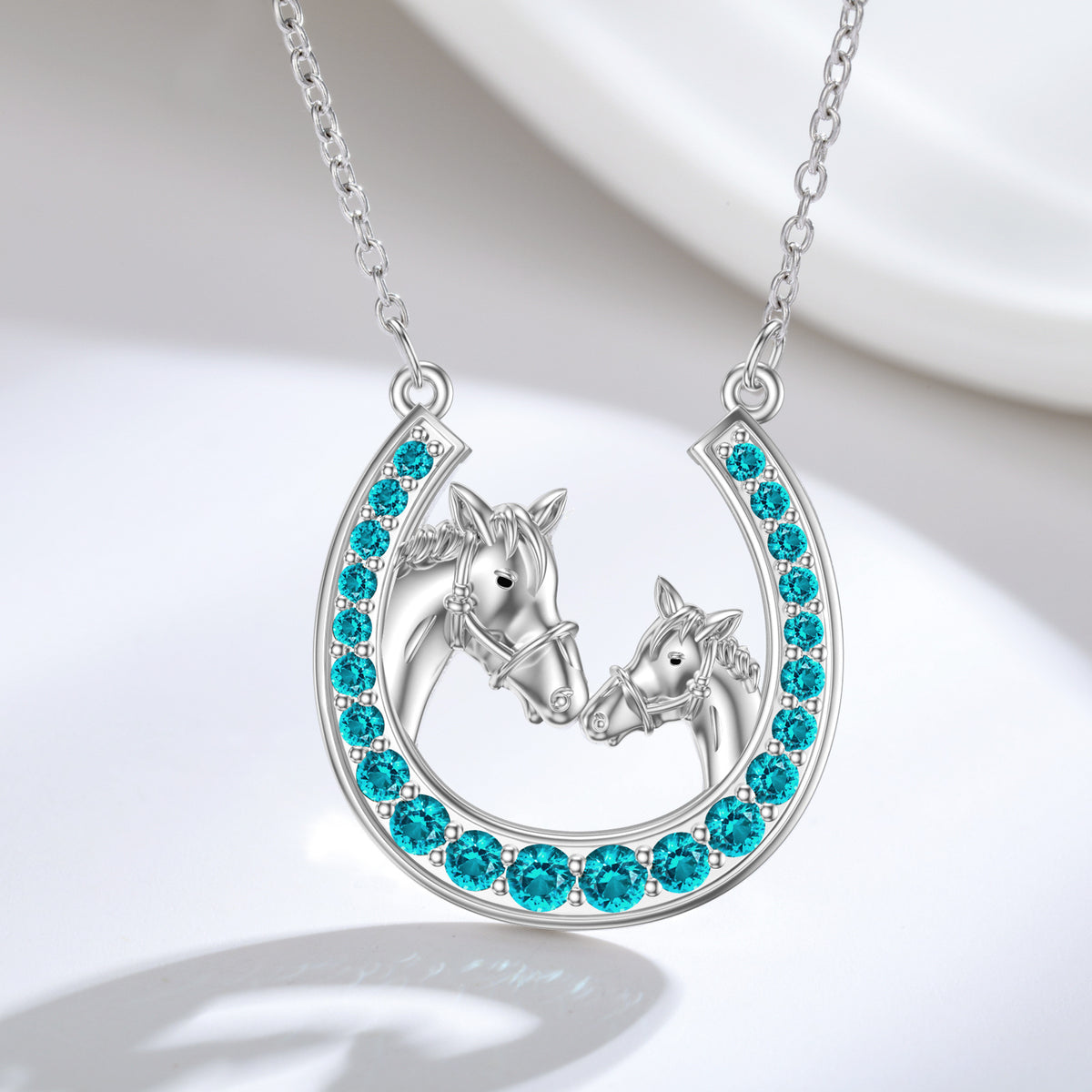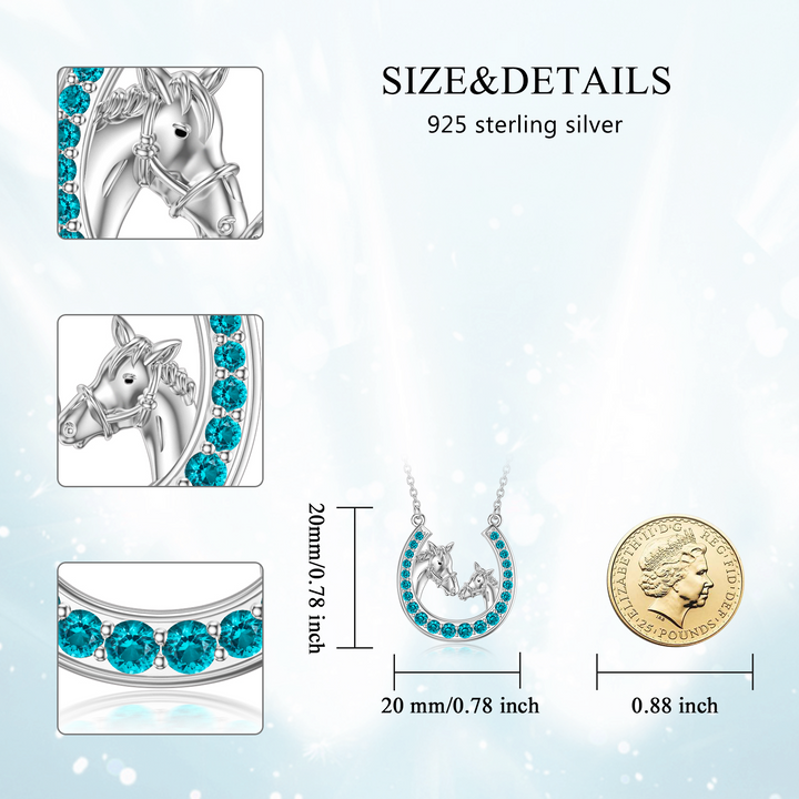 Sterling Silver Created Tourmaline Horse & Horseshoe Pendant Necklace