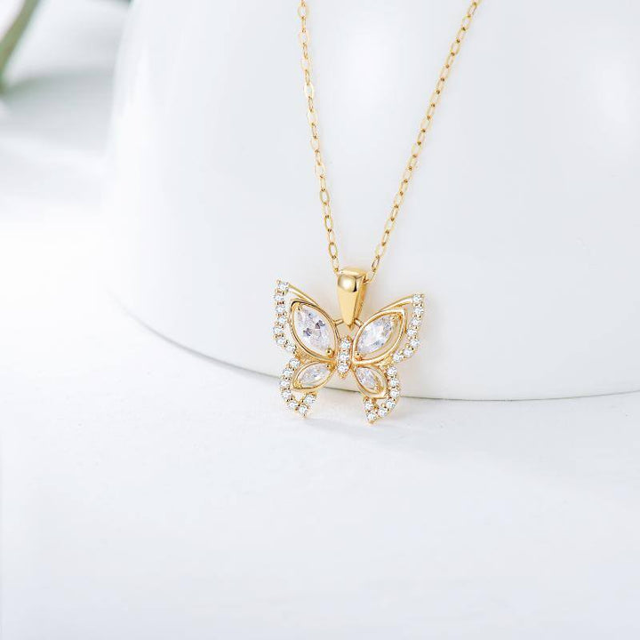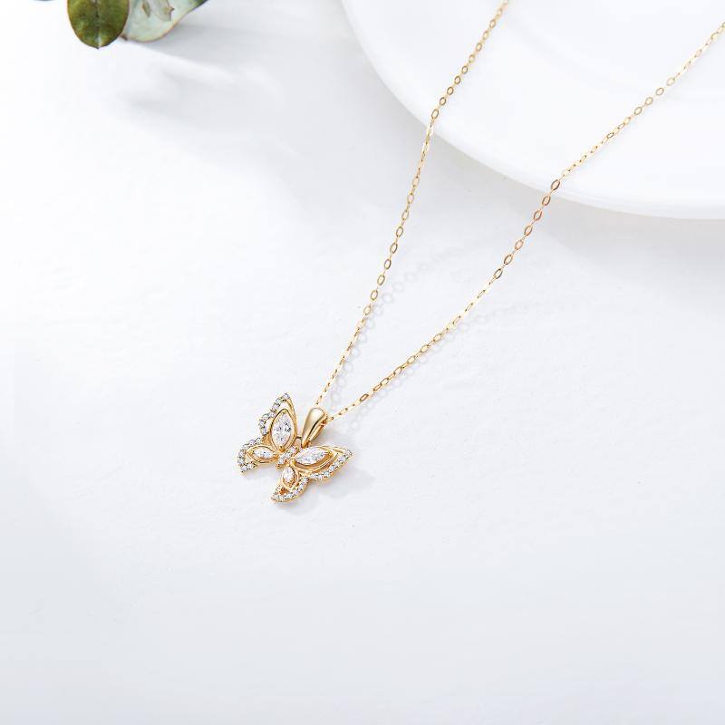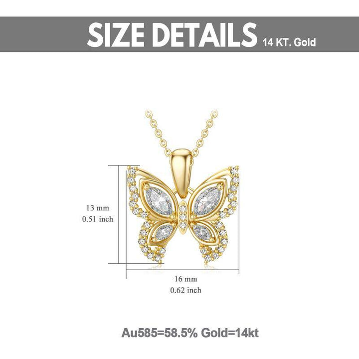 14K Gold Oval Shaped Cubic Zirconia Butterfly Pendant Necklace