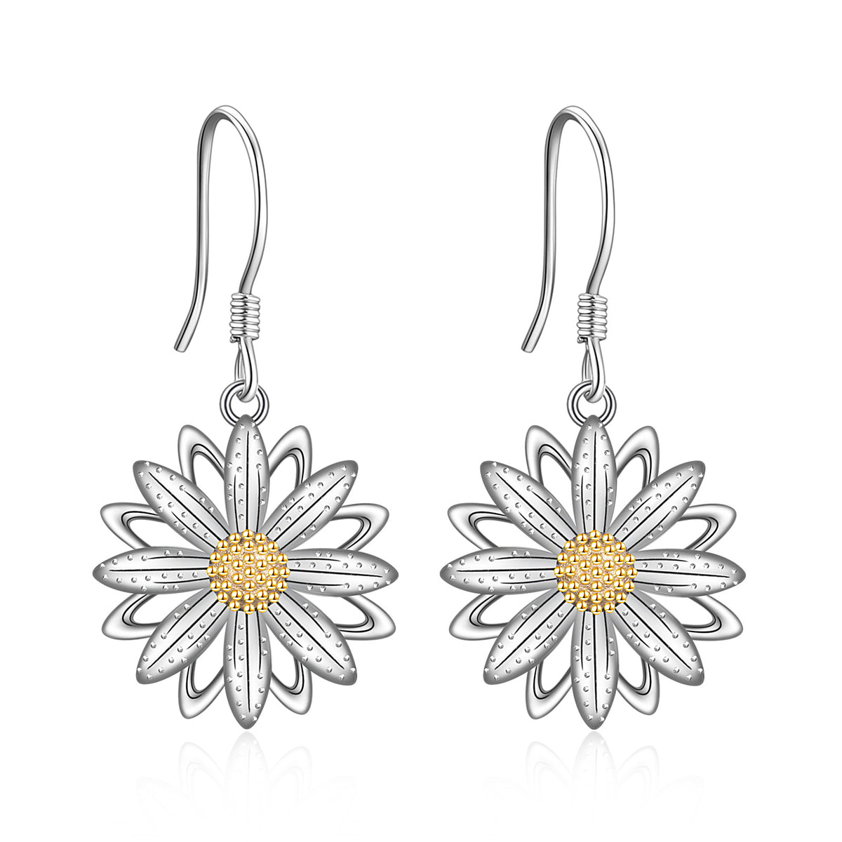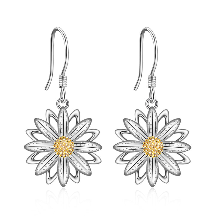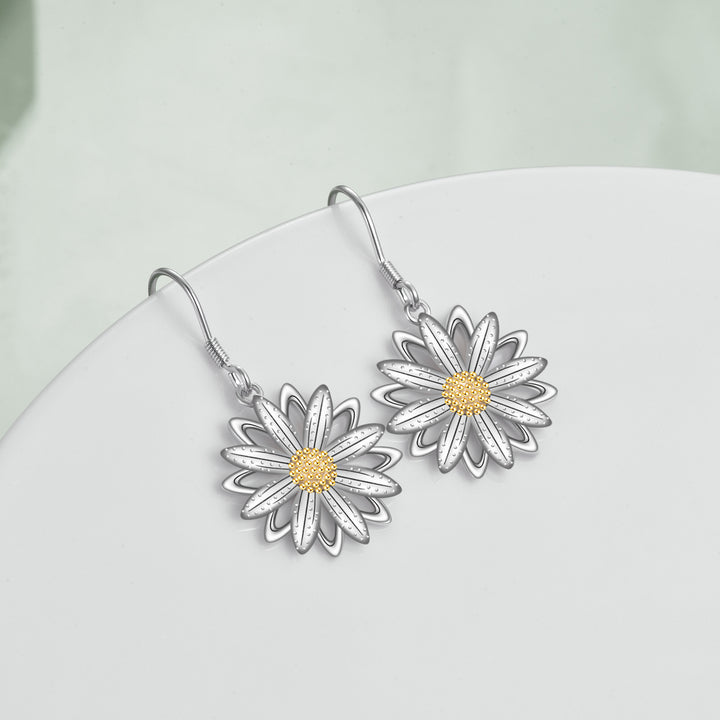 Sterling Silver Two-tone Daisy Drop Earrings