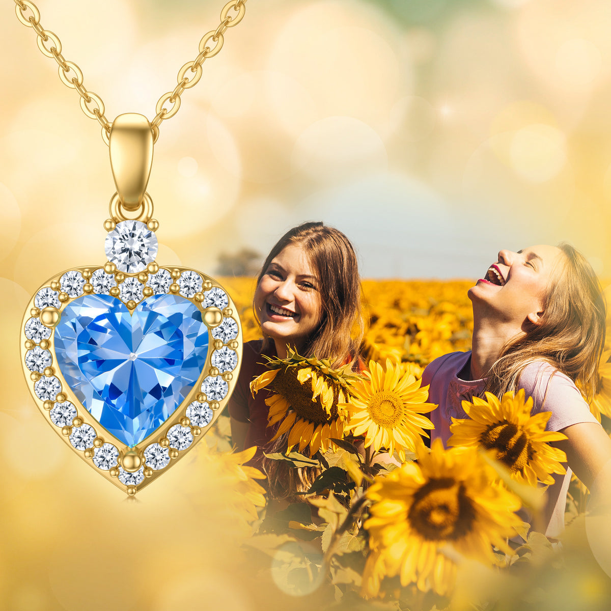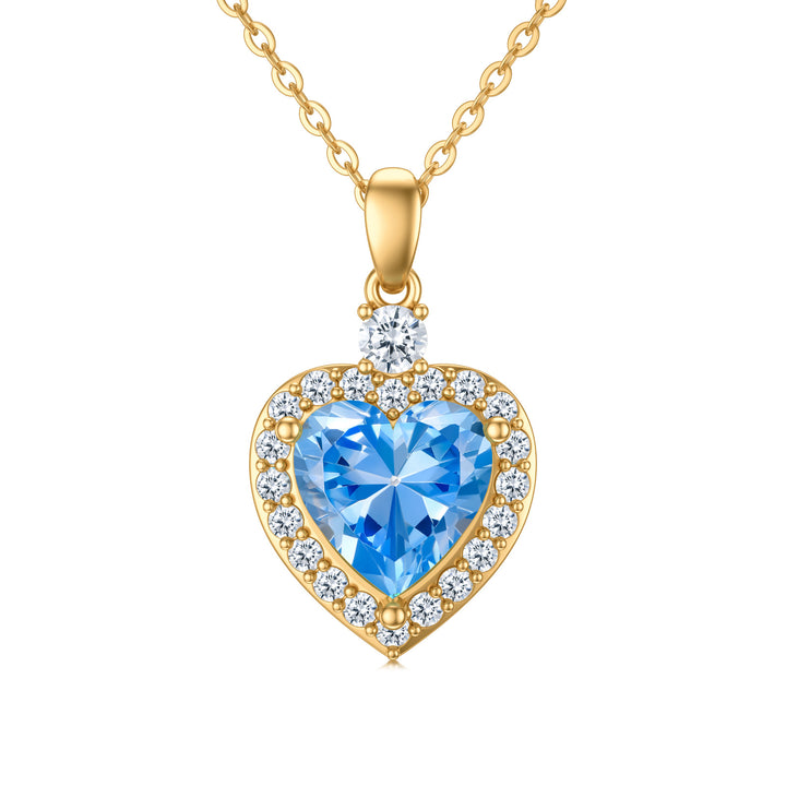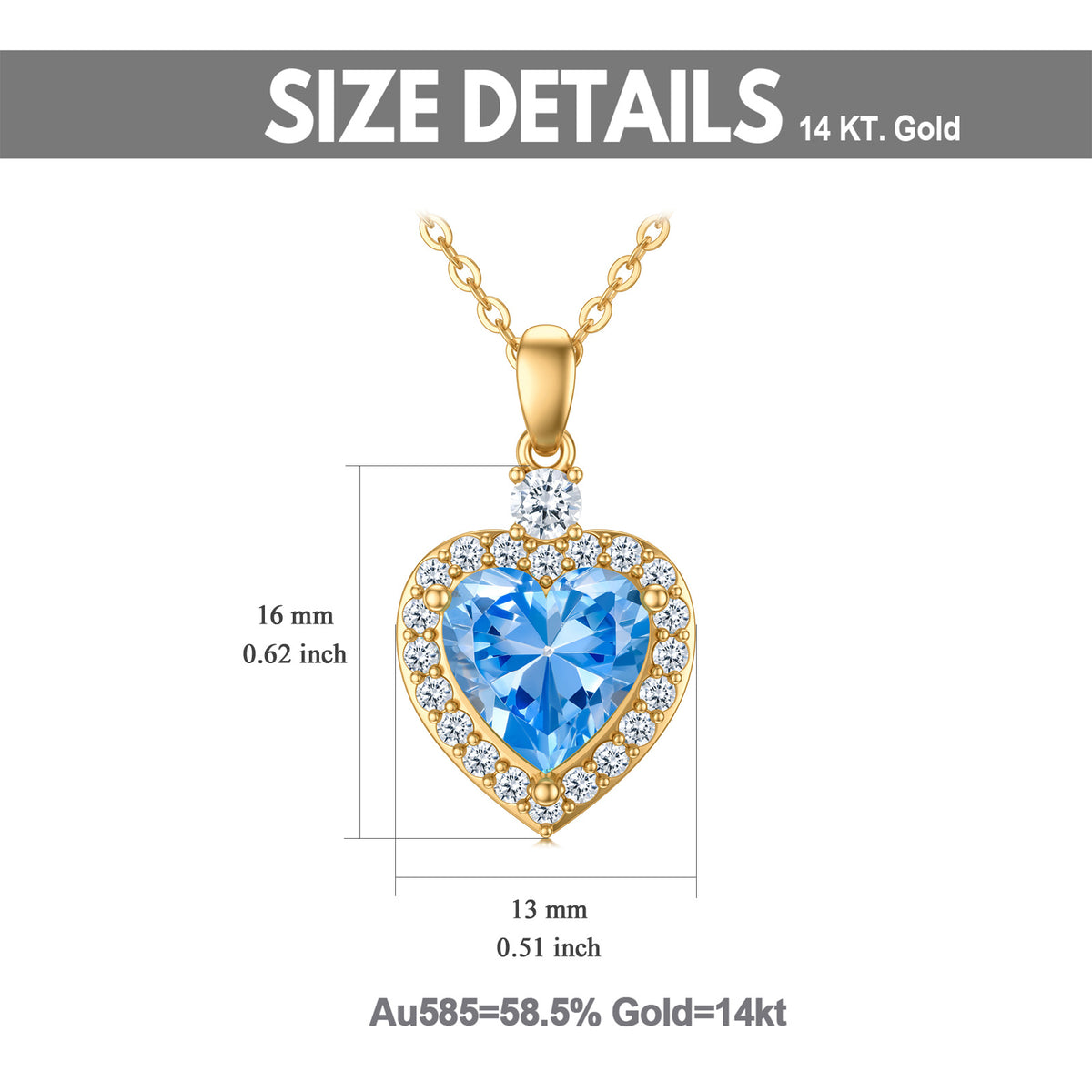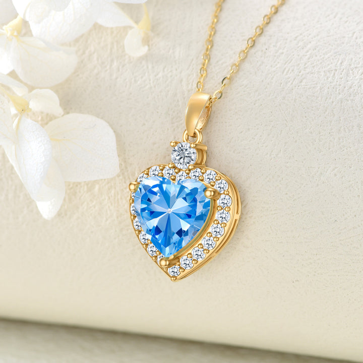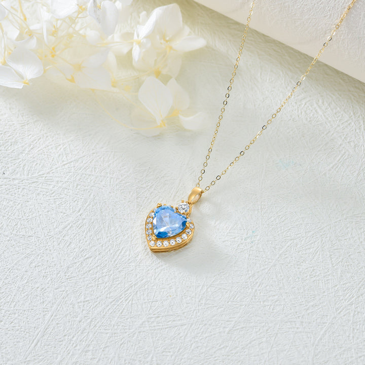 14K gold; blue topaz gemstone; heart-shaped pendant; includes chain.