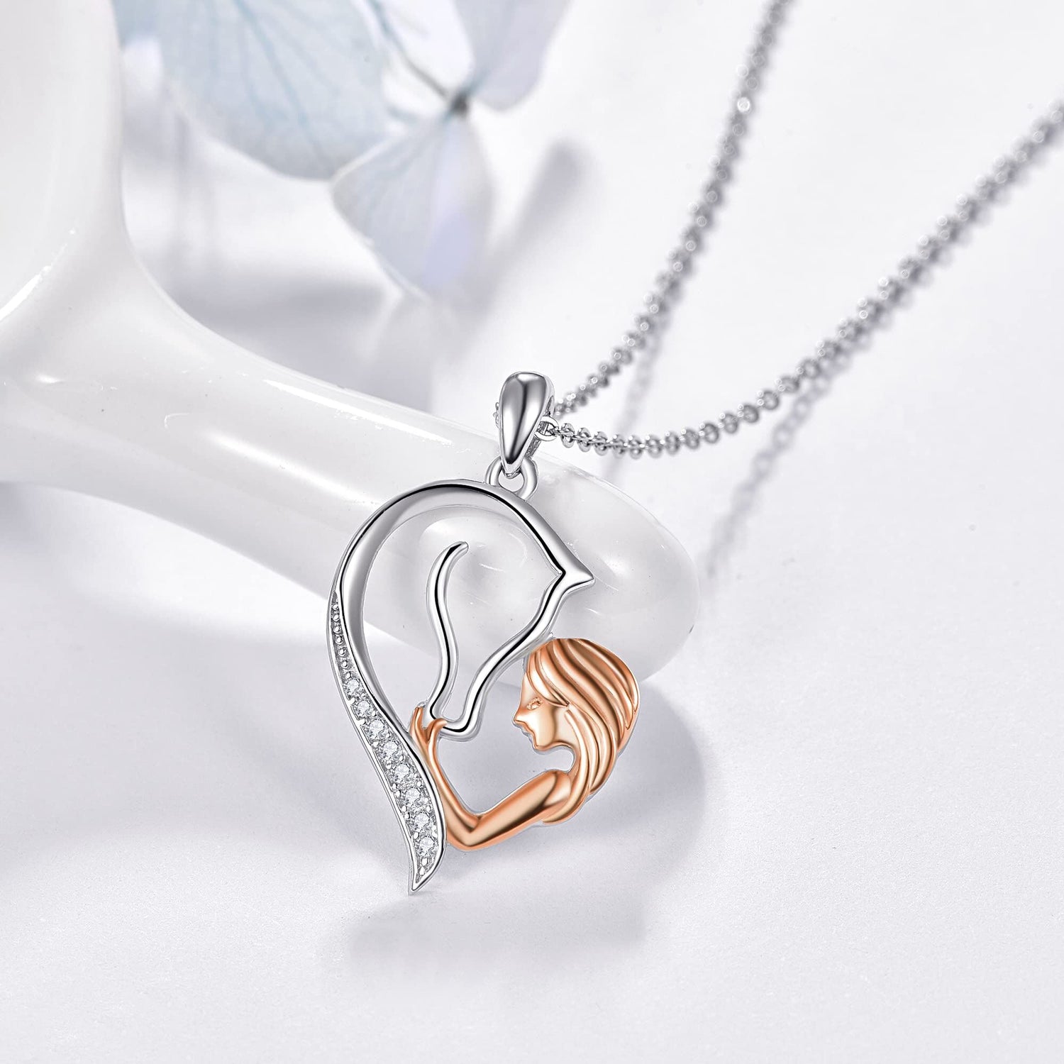 Sterling Silver with Rose Gold Plated Circular Shaped Zircon Horse & Heart Pendant Necklace