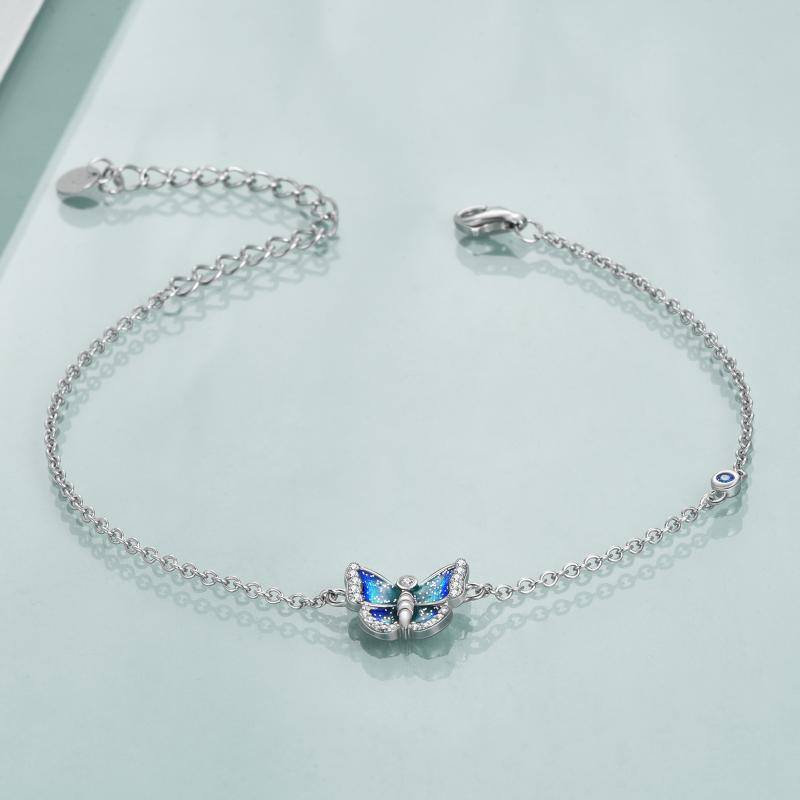 This Sterling Silver Zircon Butterfly Charm Bracelet by YFN is an exquisite charm bracelet for women who seek sophistication and style. Crafted from Sterling silver and beautifully plated in white gold, it is adorned with sparkling zircon accents in a charming blue butterfly motif. The aesthetic is timeless and luxurious, combining the appeal of the butterfly with the shimmer of zircon, making it a versatile and essential addition for both everyday glamour and special occasions.