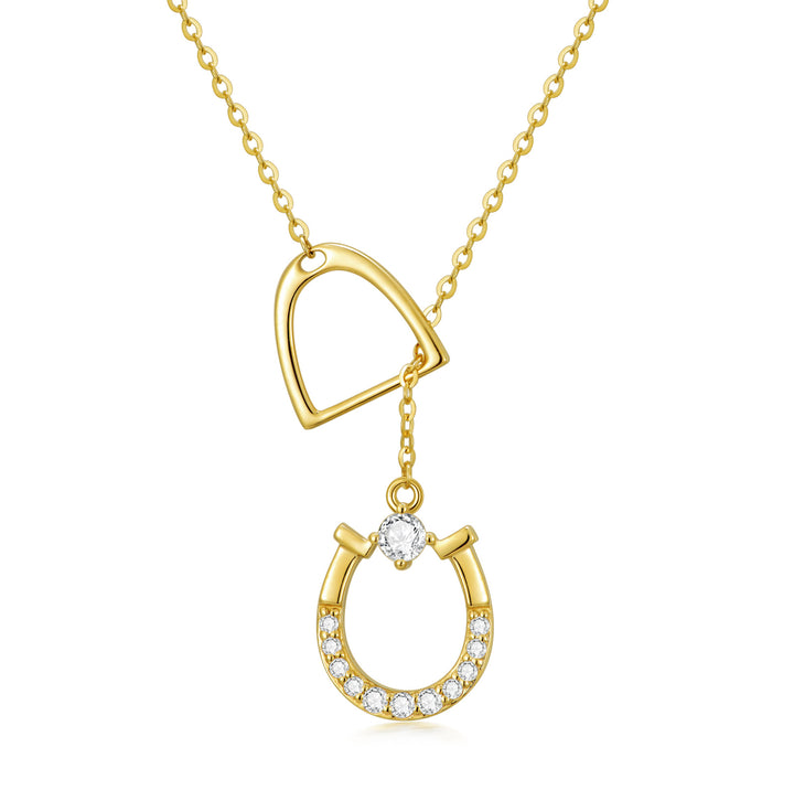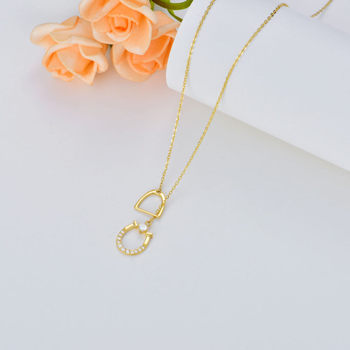 14K Gold Circular Shaped Cubic Zirconia Horseshoe Pendant Necklace