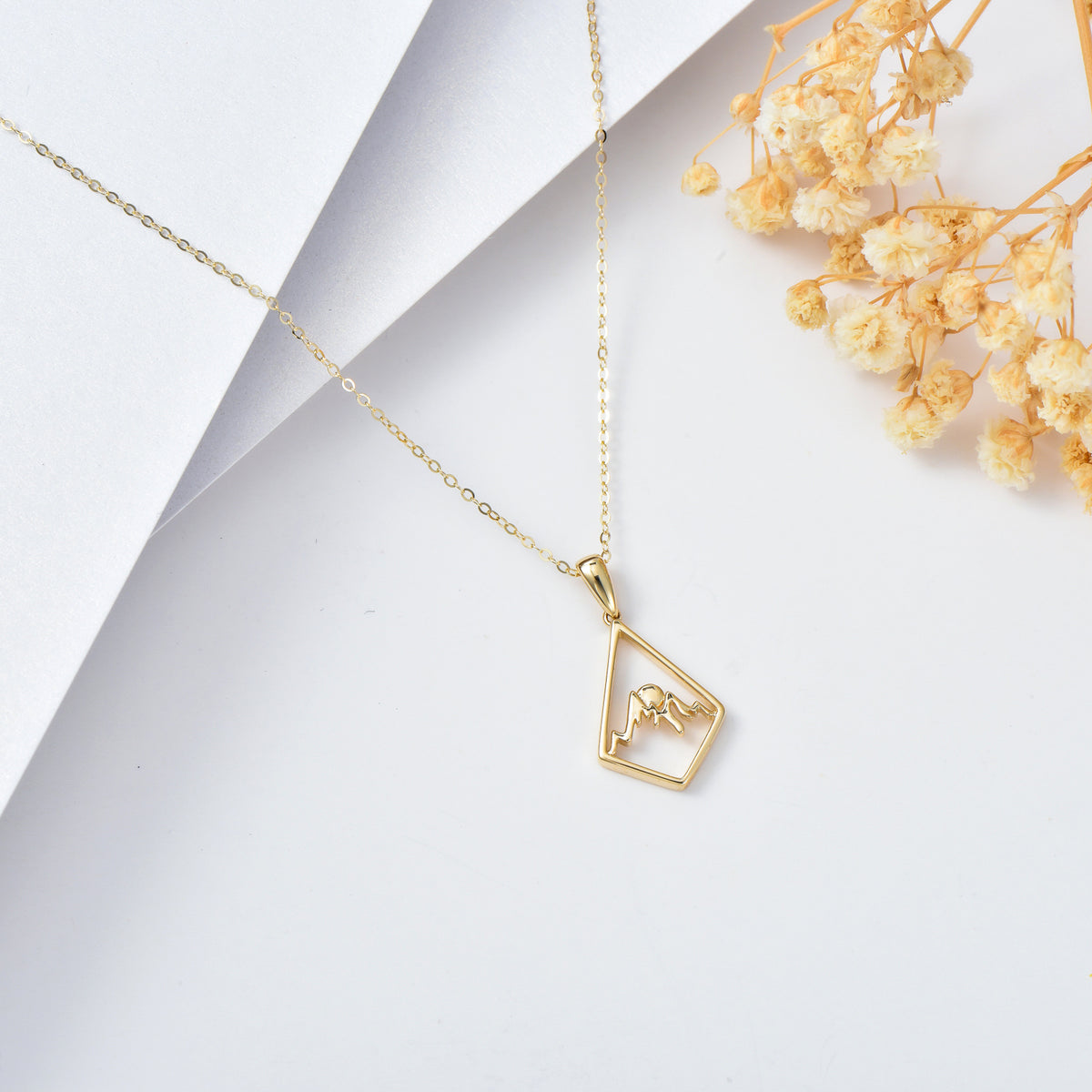 This 14K Gold Bead Mountains Necklace by YFN offers a subtle yet striking gold accent for women who appreciate nature-inspired luxury. This distinctive no-stone 14K Gold Pendant Necklace features an intricate Bead Design inspired by Mountains, focusing on its exquisite craftsmanship and the brilliant luster of pure gold.