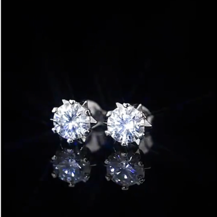 These Unisex Stud Earrings are Crafted from Premium 14K White Gold, Featuring Dazzling Moissanite Gemstones in a Unique Circular Snowflake Design.