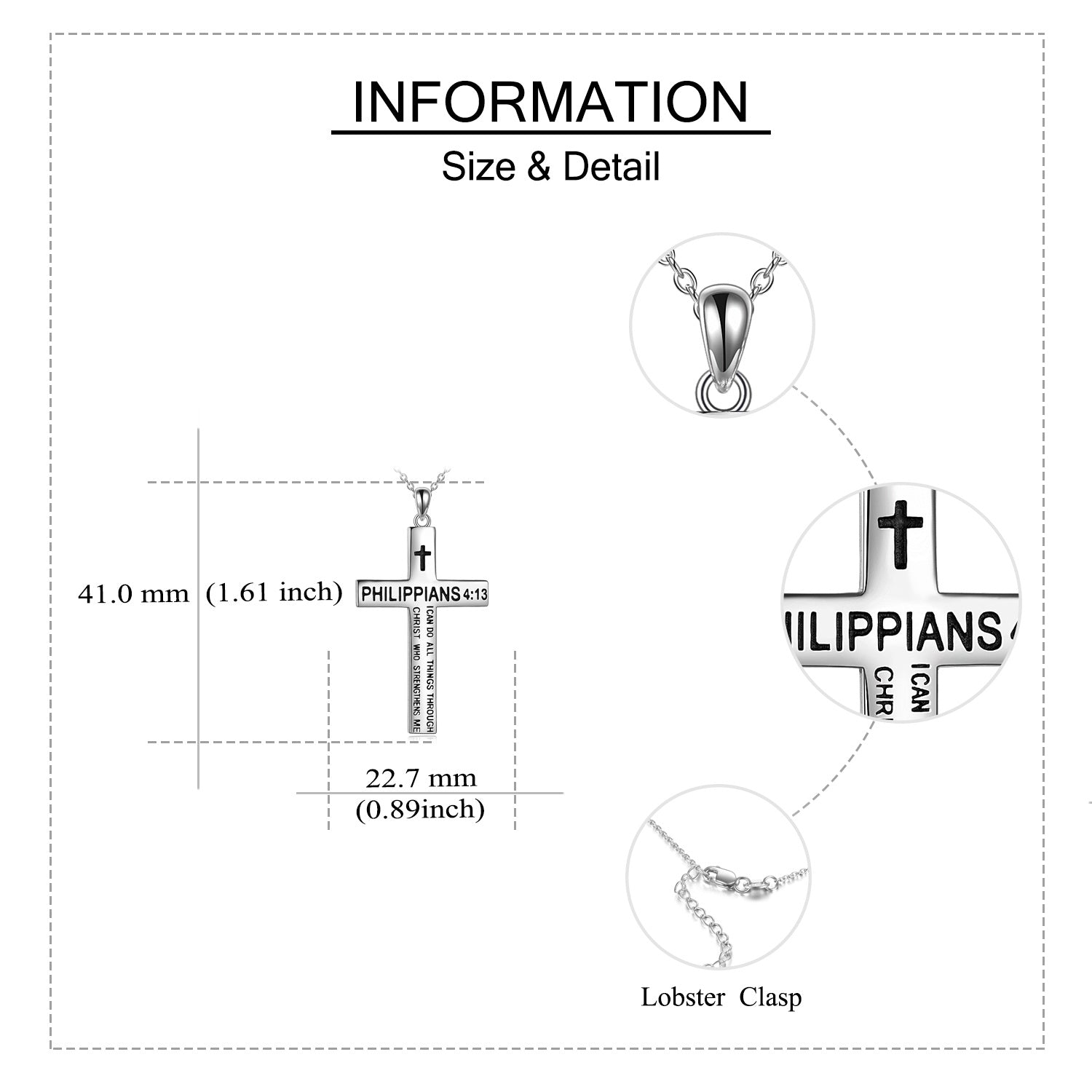 This Sterling Silver Cross Belief Courage Pendant Necklace by YFN is an elegant, stone-free statement of faith and spiritual strength for women. Meticulously crafted from high-quality sterling silver and plated in radiant white gold, the unique cross design is inscribed with the empowering phrase "I Can Do All Things Through Christ Who Strengthens Me." This piece offers a blend of sophistication and profound meaning, serving as a constant reminder of inner strength.