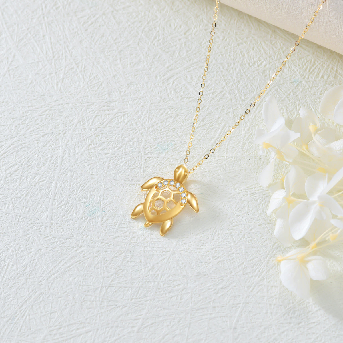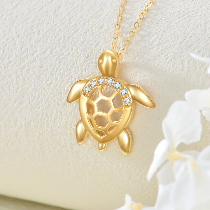 14K Gold Diamond Turtle Pendant Necklace For Women
