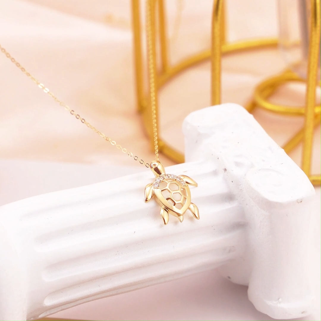 This 14K Gold Diamond Turtle Pendant Necklace by YFN is a stunning piece for women, blending the timeless allure of gold with meaningful symbolism. Crafted from 14K Gold, the intricate turtle design, symbolizing longevity and steadfastness, is adorned with dazzling, expertly set diamonds. This radiant accessory is perfect for the modern woman who values both beauty and significance in her adornments, ensuring you always stand out in style.