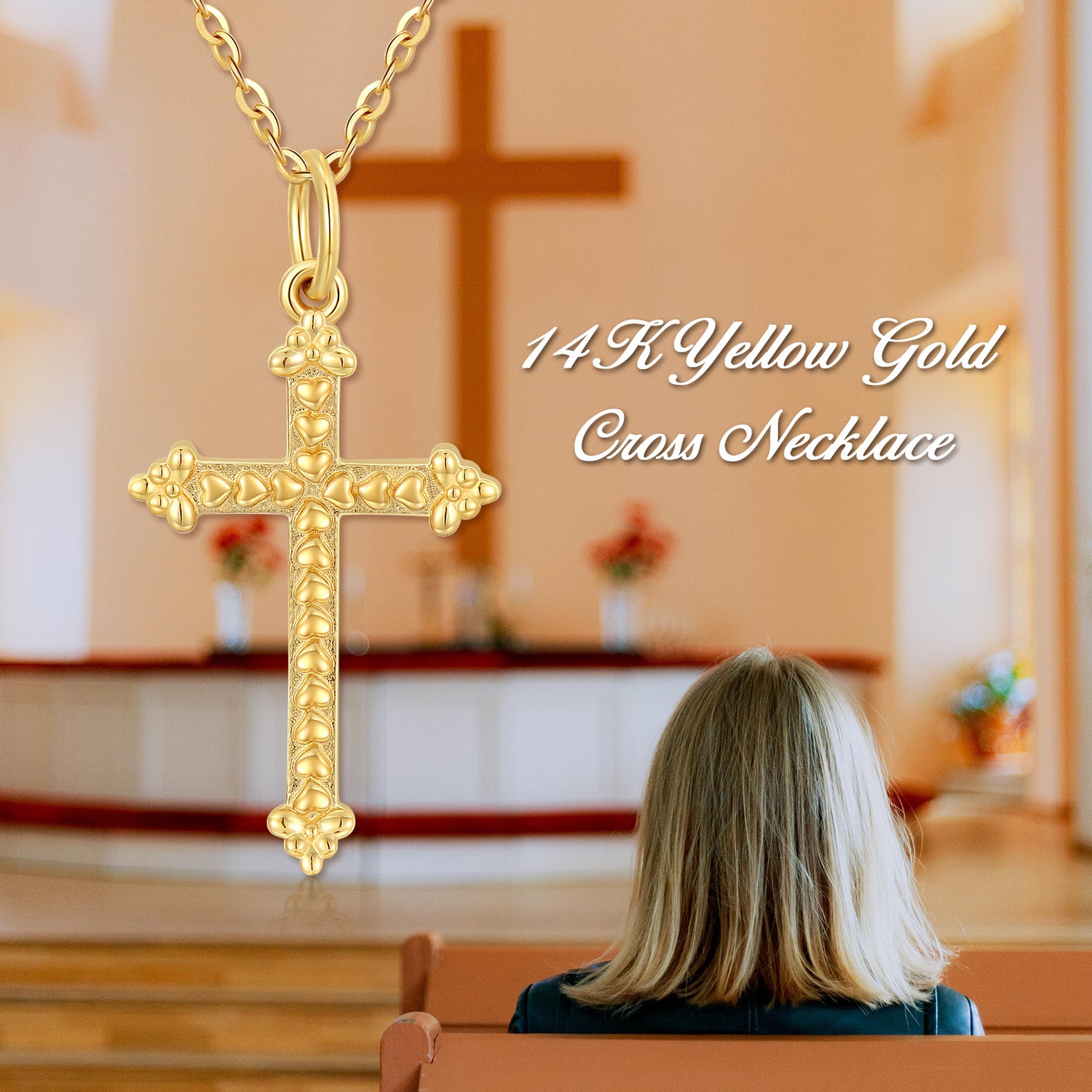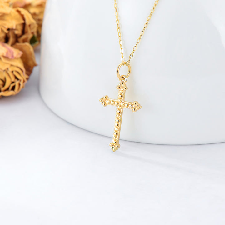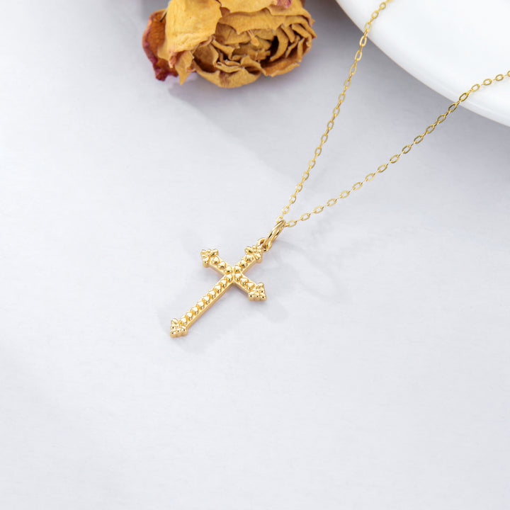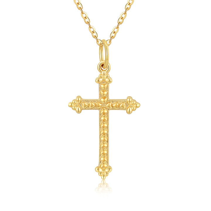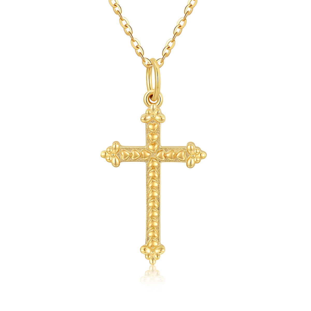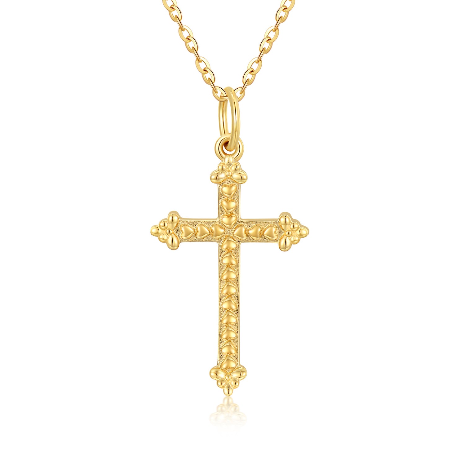 This 14K Gold Heart Filled Cross Pendant Necklace by YFN is a stone-free, timeless piece for women. Made from genuine 14K gold, this exquisite necklace features a minimalist cross design with a smooth, stone-free surface, offering a sleek and polished look for any occasion.