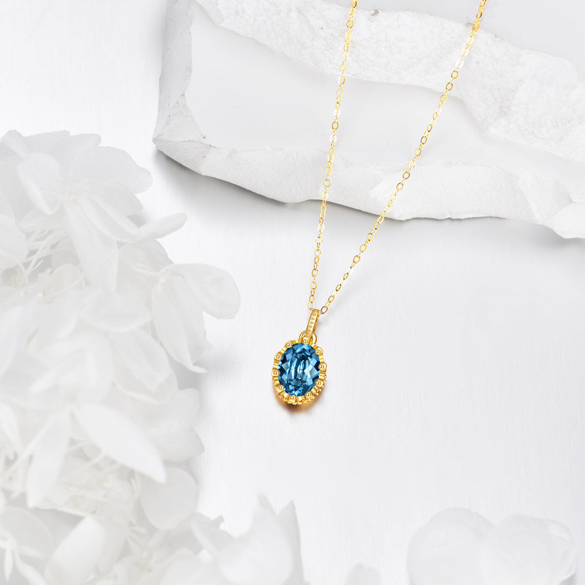Crafted from premium 14K Gold, this Oval-Shaped Pendant Necklace features a dazzling Crystal.