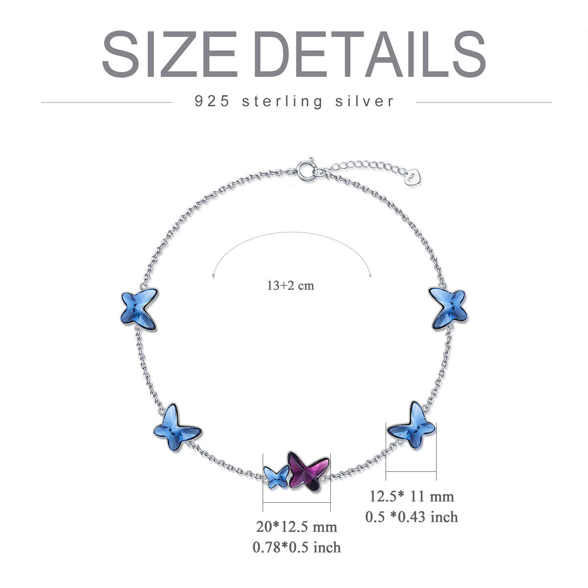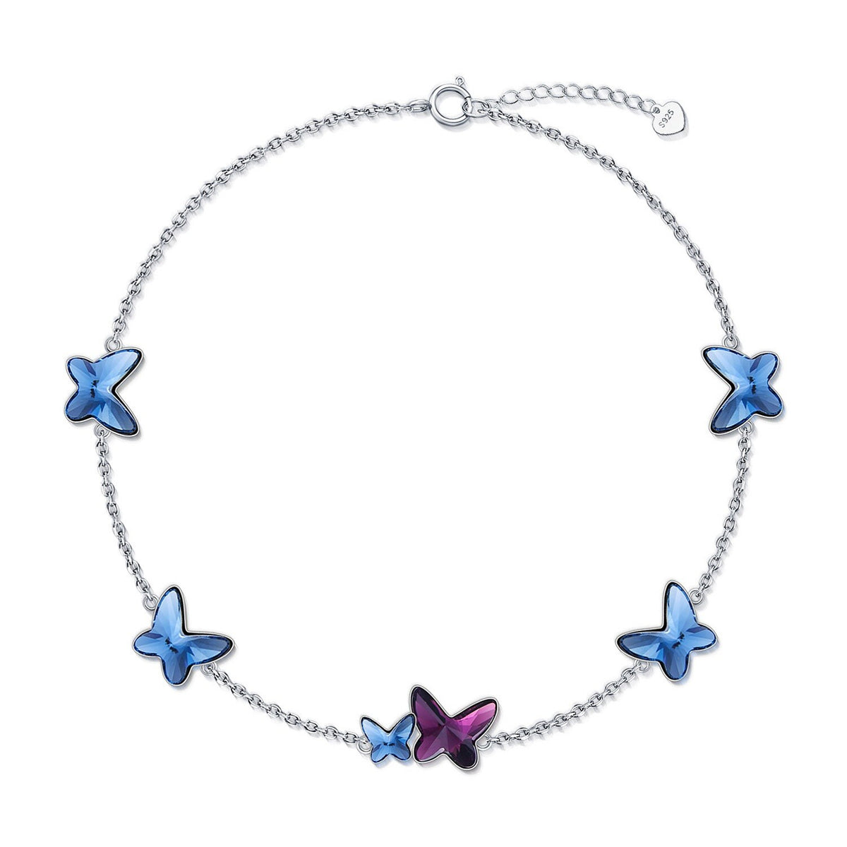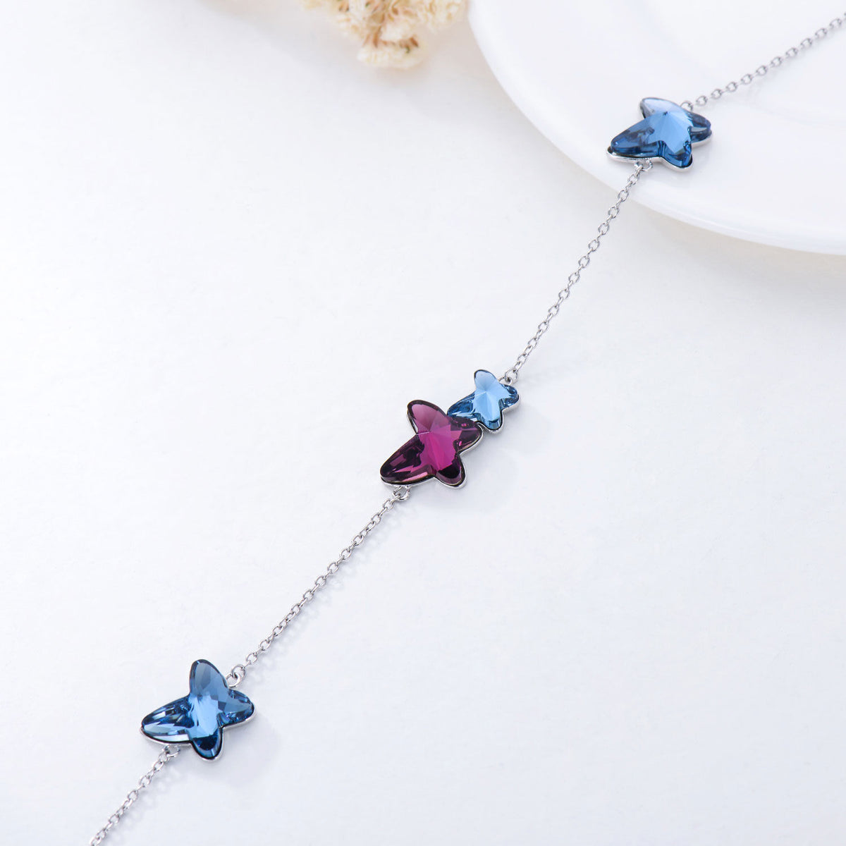 Sterling Silver Crystal Butterfly Metal Choker Necklace