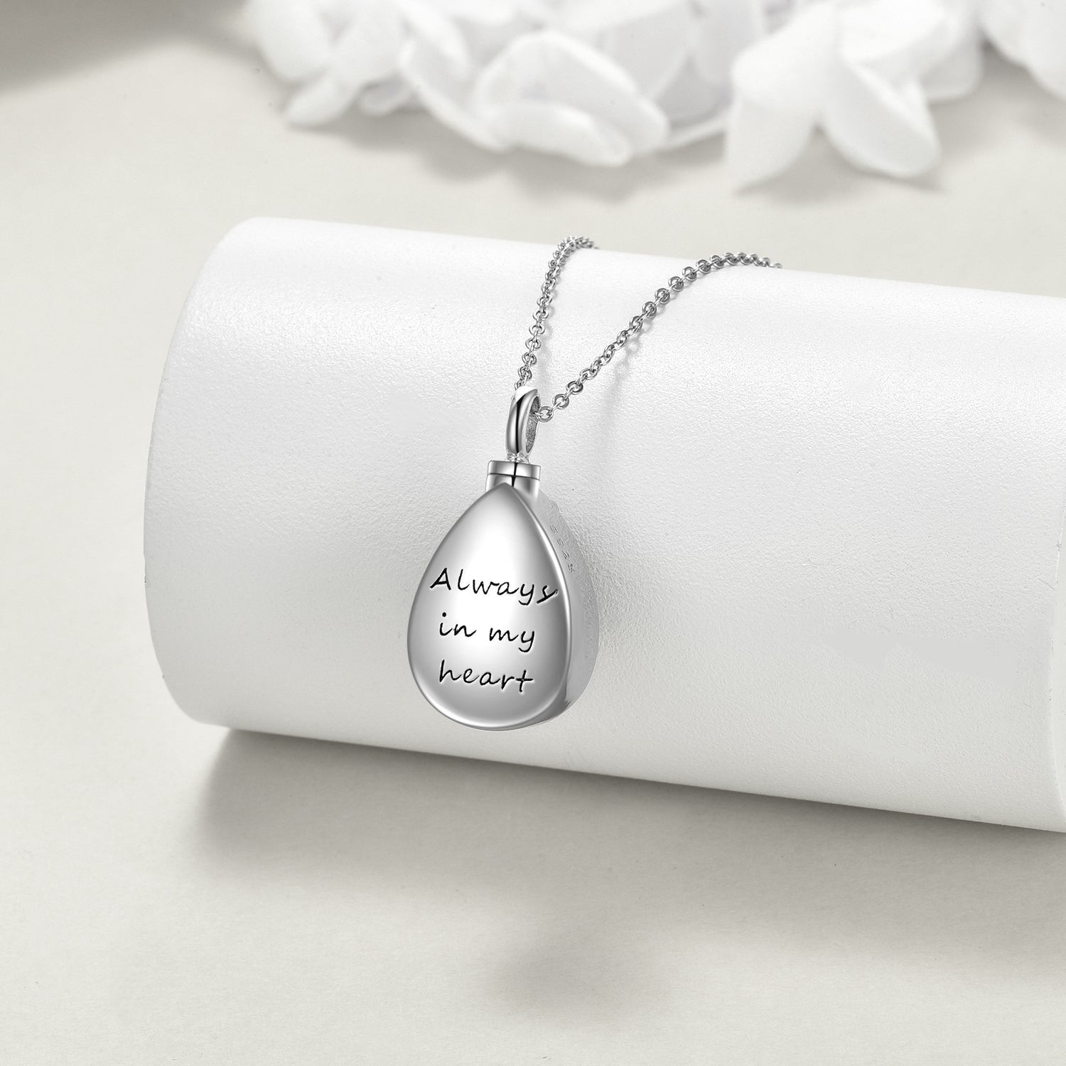 This Sterling Silver Moonstone Butterfly & Drop Shape Urn Necklace for Ashes by YFN is a beautifully graceful and intimate keepsake. The drop-shaped urn pendant features a mesmerizing moonstone and a delicate butterfly, set in white gold-plated sterling silver, offering an ethereal, sentimental aesthetic. The engraving "Always In My Heart" gives it a profound, cherished vibe, symbolizing transformation and eternal love for a lost loved one.