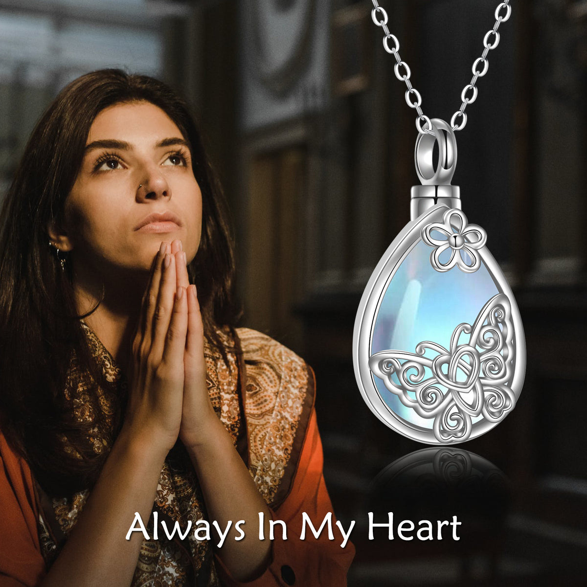 Sterling Silver Moonstone Butterfly & Drop Shape Urn Necklace for Ashes with Engraved Word