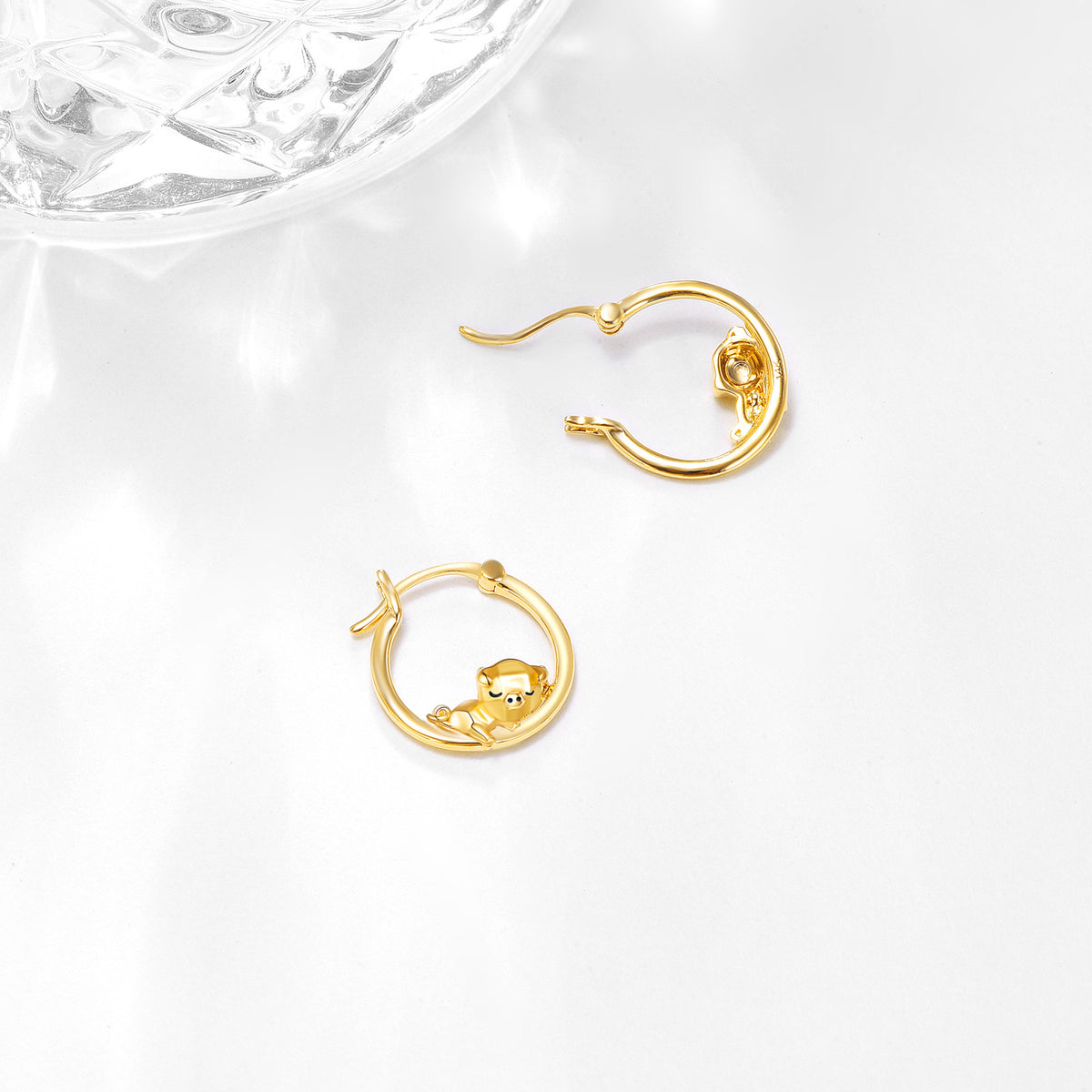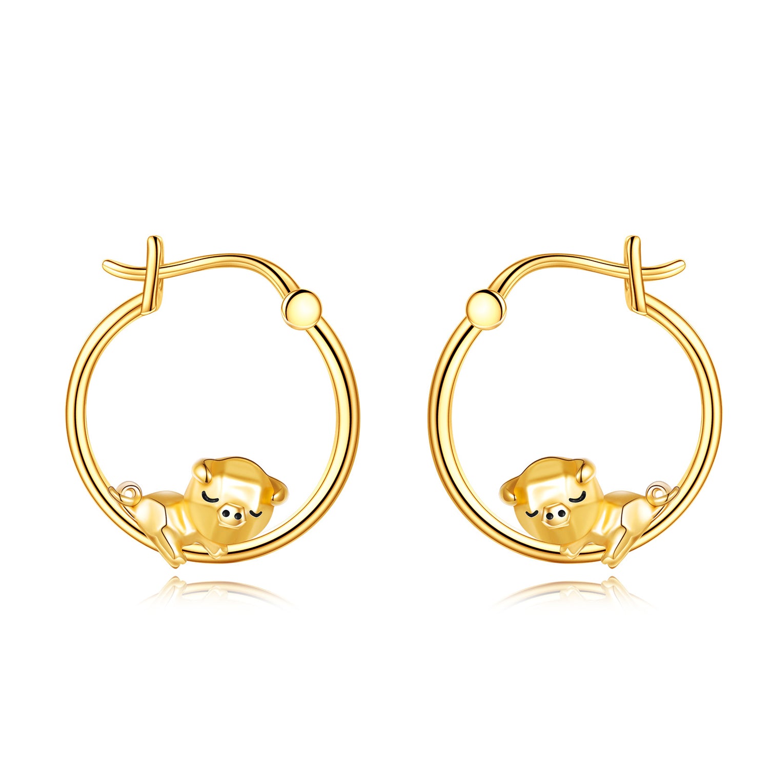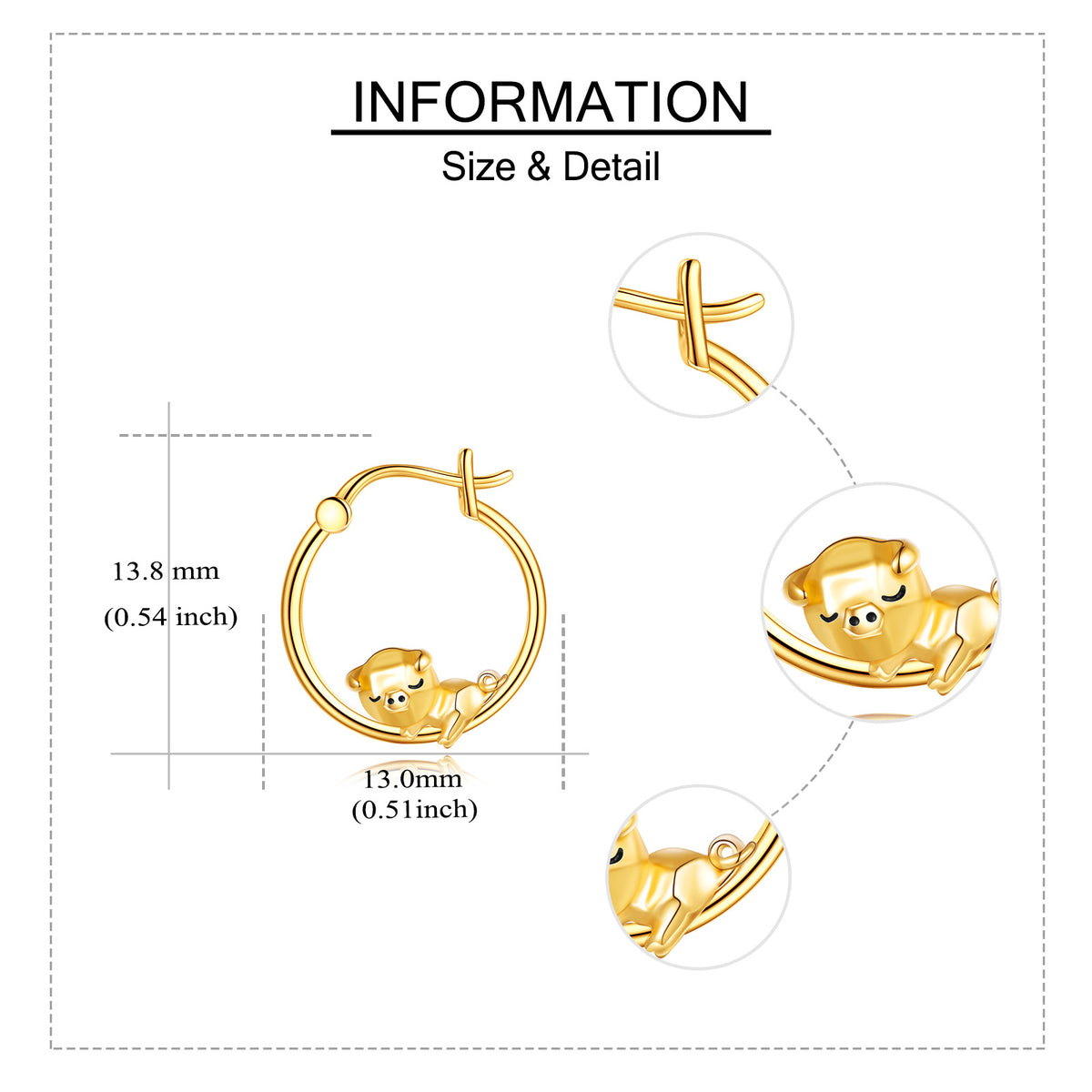 These no-stone Women's Hoop Earrings are Crafted from High-Quality 14K Gold, Featuring an Adorable Pig Charm.