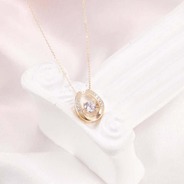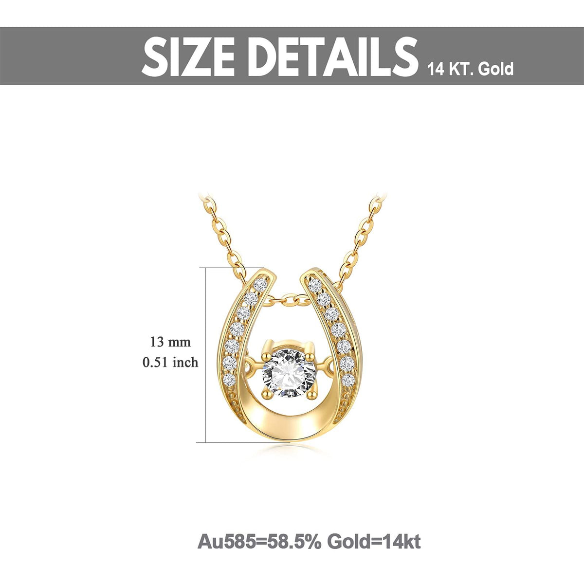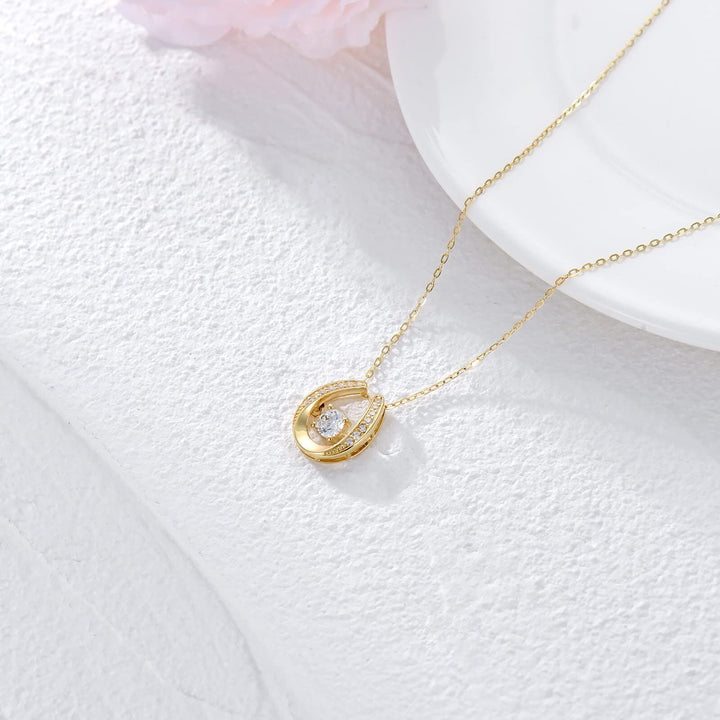 This Pendant Necklace is crafted from High-Quality 14K Gold, Featuring a Brilliantly Clear Cubic Zirconia Centerpiece in a Classic Horseshoe Design.
