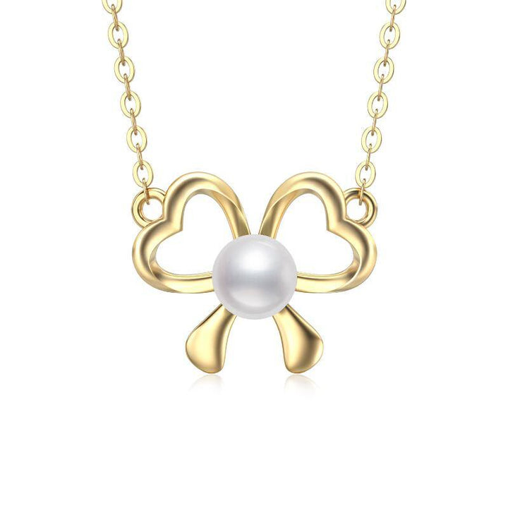 This Women's Pendant Necklace is crafted from Premium 14K Gold, Featuring a Heart-Shaped Design Adorned with a Lustrous Pearl.