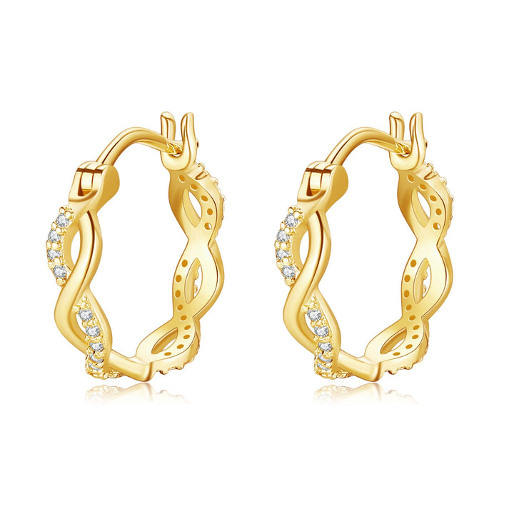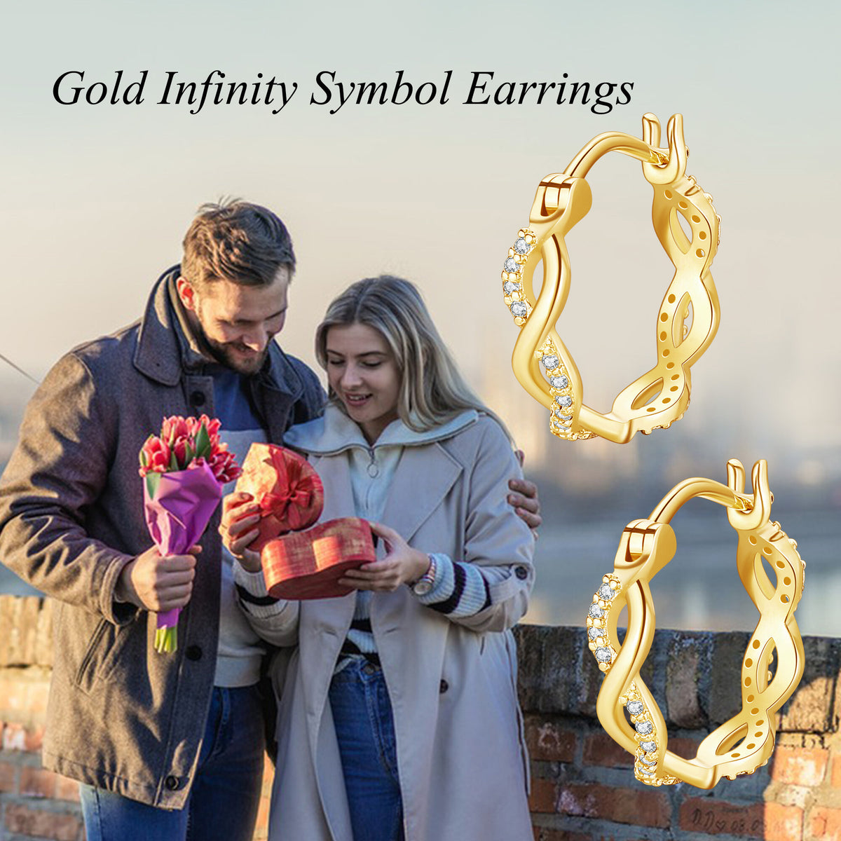 These 14K Gold Cubic Zirconia Infinity Symbol Hoop Earrings by YFN are a blend of sophistication and style for women. Crafted from high-quality 14K gold, these hoop earrings are adorned with sparkling cubic zirconia and designed in a stunning infinity symbol shape, offering durability and a timeless appeal.