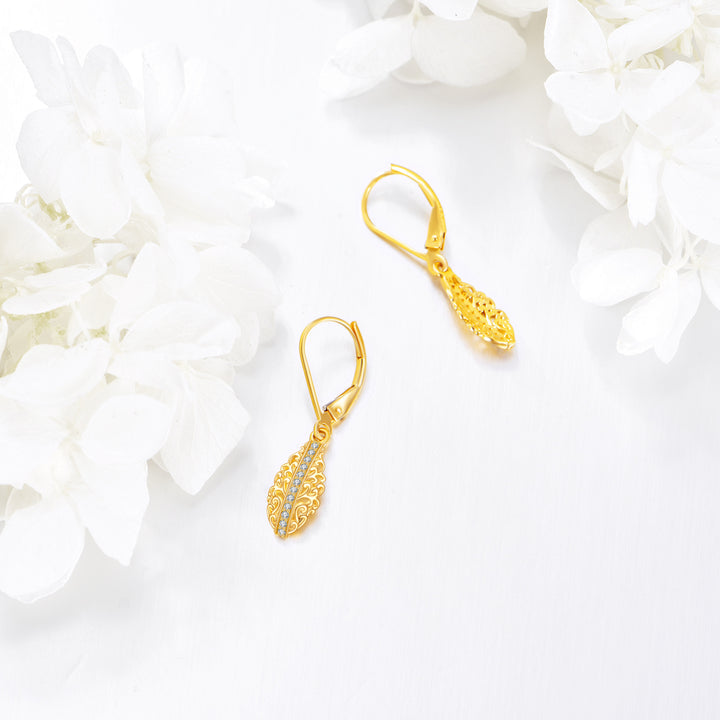 Crafted from solid 14K Gold. These are Drop Earrings featuring a Plumeria Flower motif set with Moissanite stones.