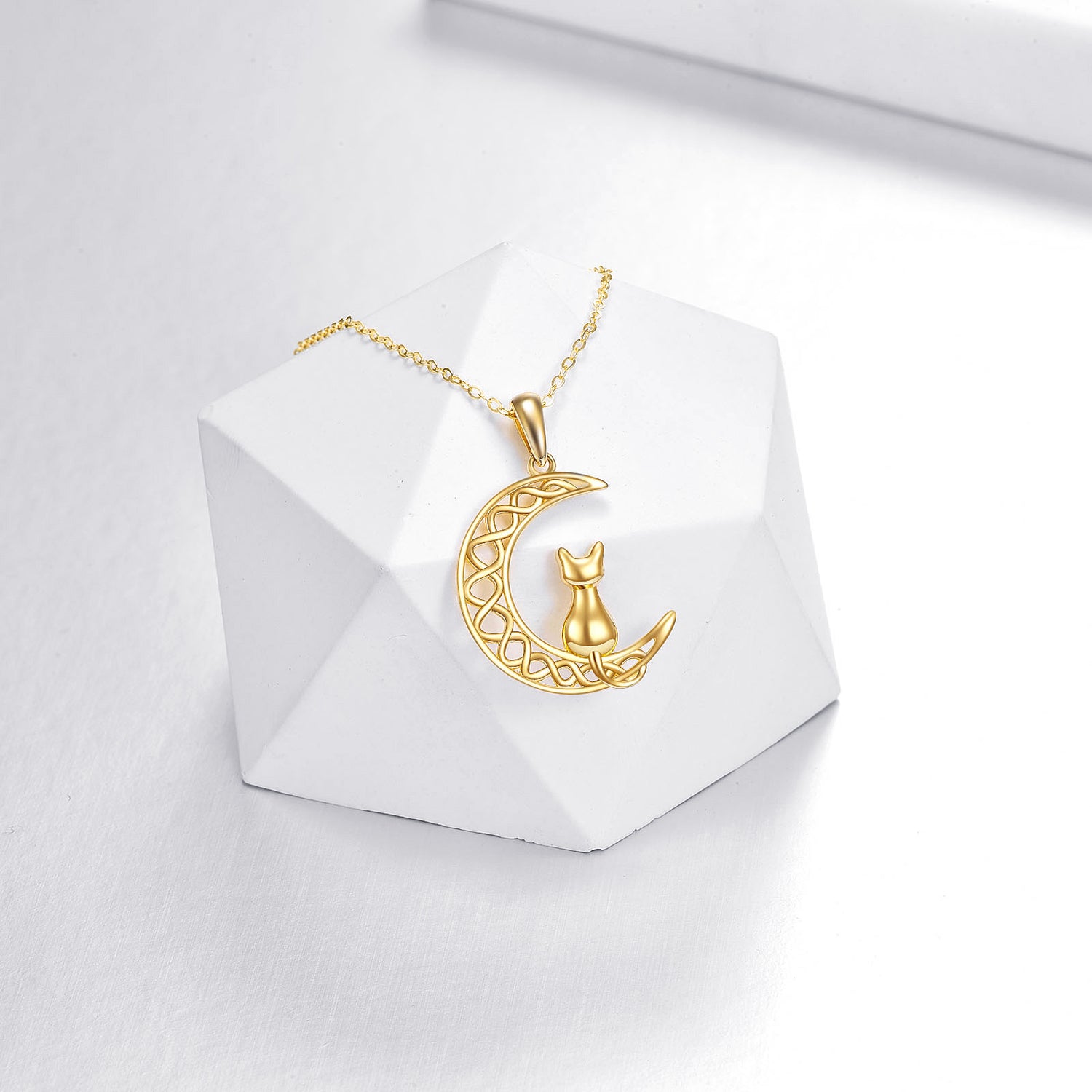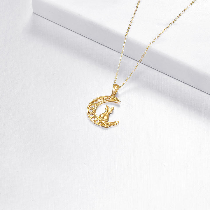 This 14K Gold Cat & Moon Pendant Necklace by YFN brings whimsical charm and minimalistic elegance together in a stone-free design. The golden cat gazing at the crescent moon creates a captivating silhouette, making this unisex piece a versatile and enchanting accessory.