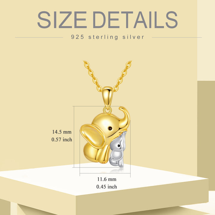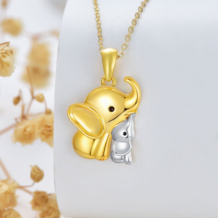 14K Gold Two-tone Elephant Mom & Baby Pendant Necklace