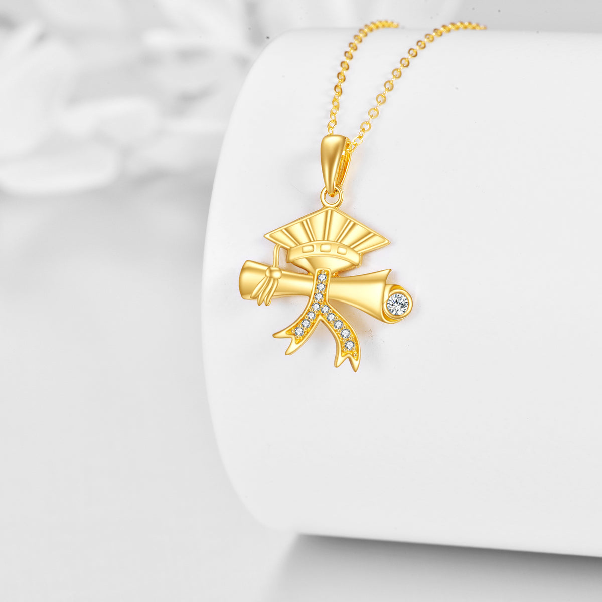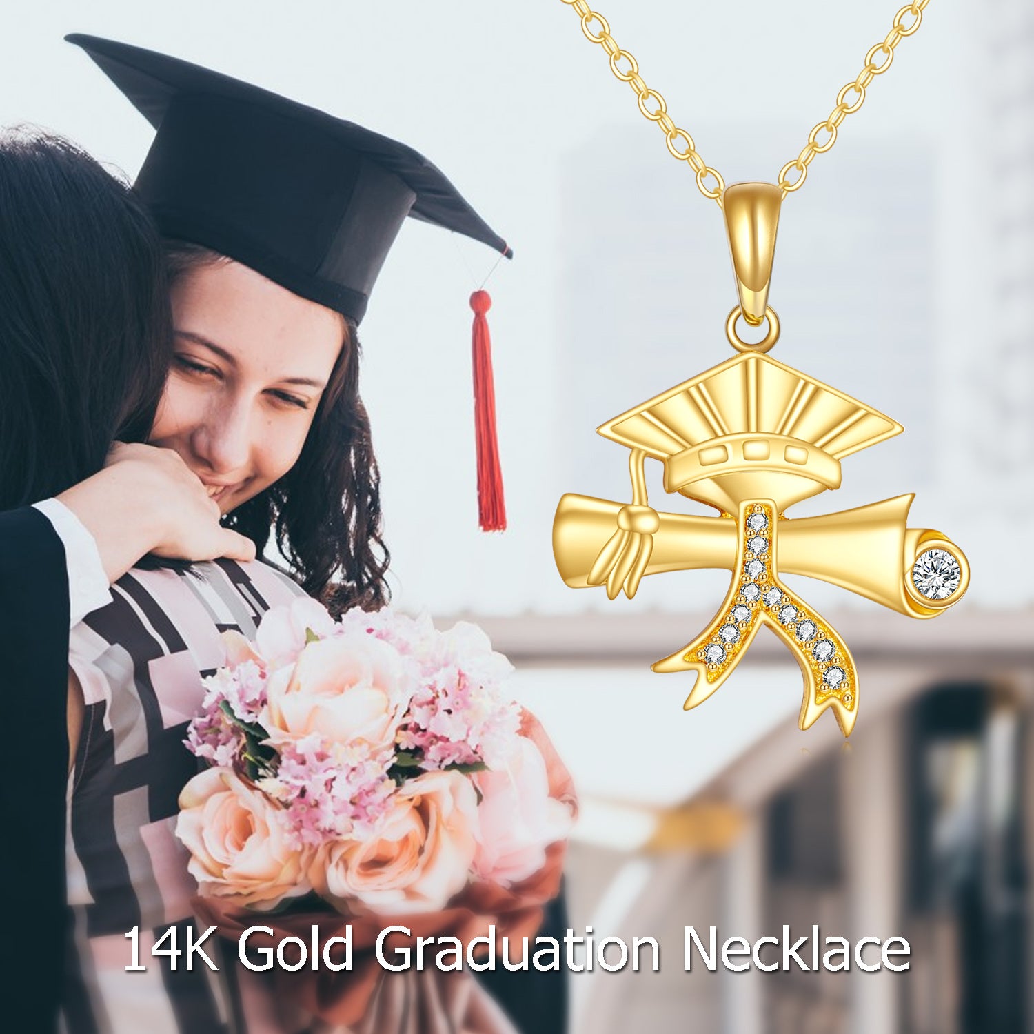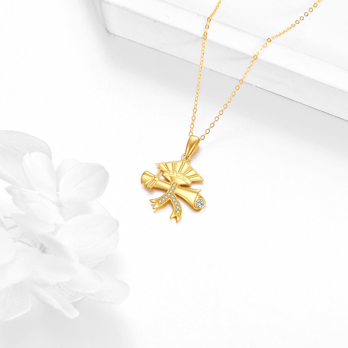 Crafted with high-quality 14K Gold, this Pendant Necklace features a unique Trencher Cap design and is adorned with radiant Cubic Zirconia stones.