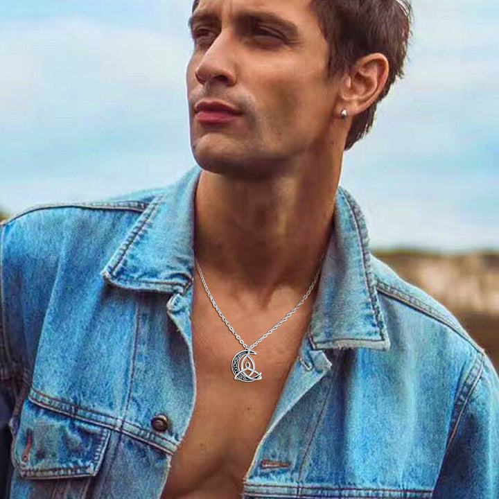 This Two-tone Celtic Knot & Moon Pendant Necklace by YFN offers a versatile, sophisticated style with an air of mystique. Crafted from premium sterling silver, the pendant features an intricate Celtic knot and moon design in an elegant silver and black finish. The aesthetic is gender-neutral and timeless, appealing to both men and women. This piece is ideal for expressing a unique personality, adding a touch of symbolic sophistication to any outfit with its detailed craftsmanship.