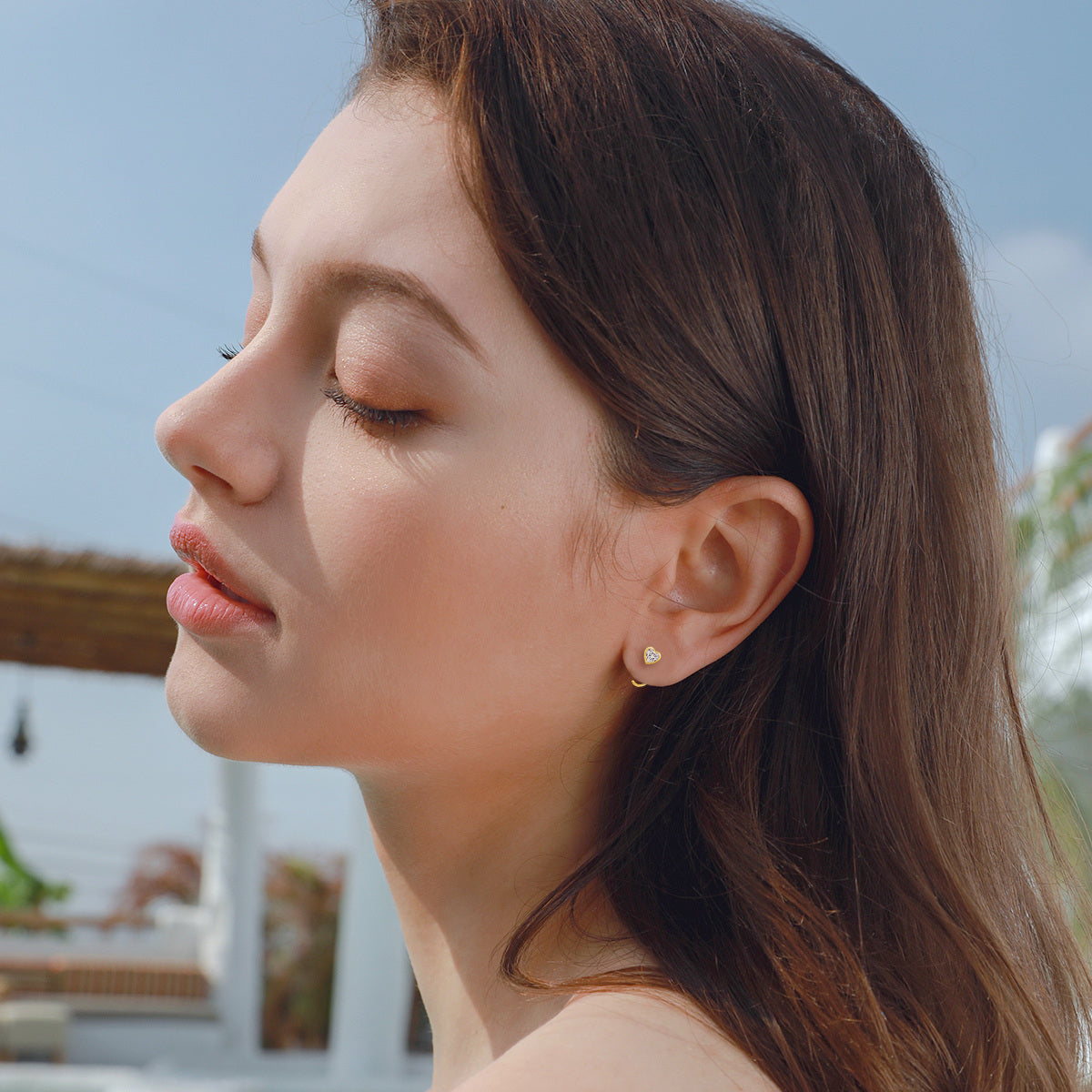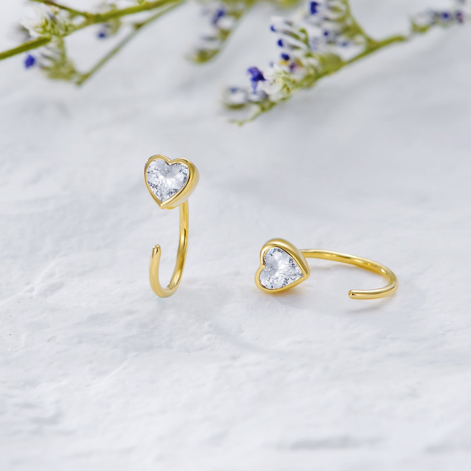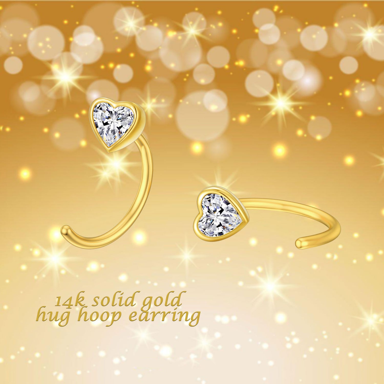 These 14K Gold Cubic Zirconia Heart Hoop Earrings by YFN are the perfect accessory for women who seek elegance and sophistication. Crafted from genuine 14K gold, these hoop earrings are adorned with sparkling Cubic zirconia in a charming heart design, seamlessly blending luxury with everyday wear. They are perfect for any occasion, offering timeless beauty and durability.