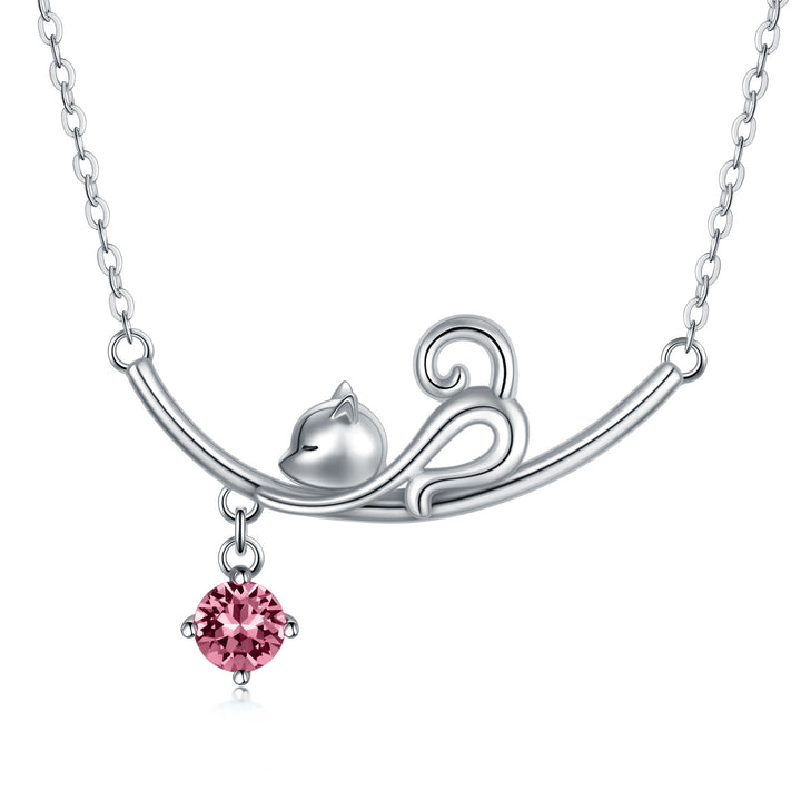 Sterling Silver Cubic Zirconia Cat Necklace for Women