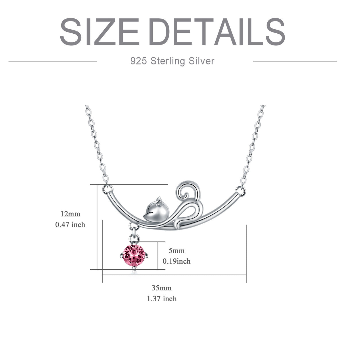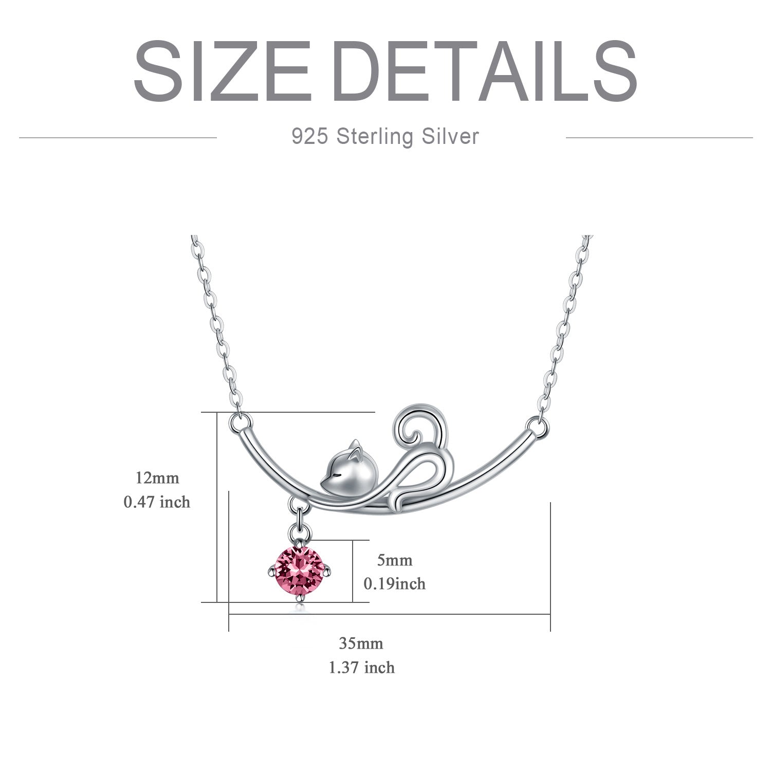 This Sterling Silver Cubic Zirconia Cat Necklace by YFN offers enchanting allure and sophisticated sparkle. The sterling silver cat pendant is adorned with a sparkling amethyst Cubic Zirconia, beautifully set in white gold plating. The playful cat motif, symbolizing grace and mystery, combined with the regal color, makes this a charming, durable, and hypoallergenic piece for women.