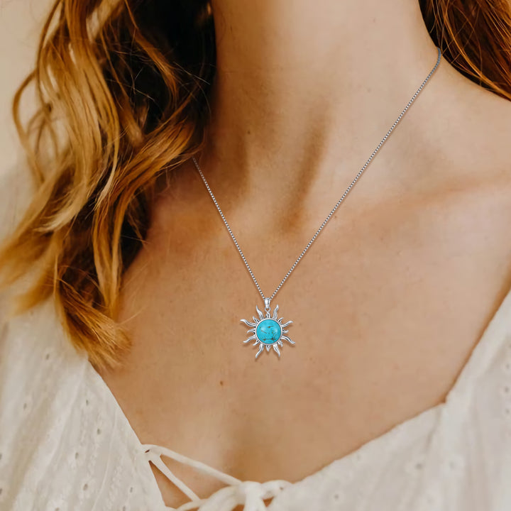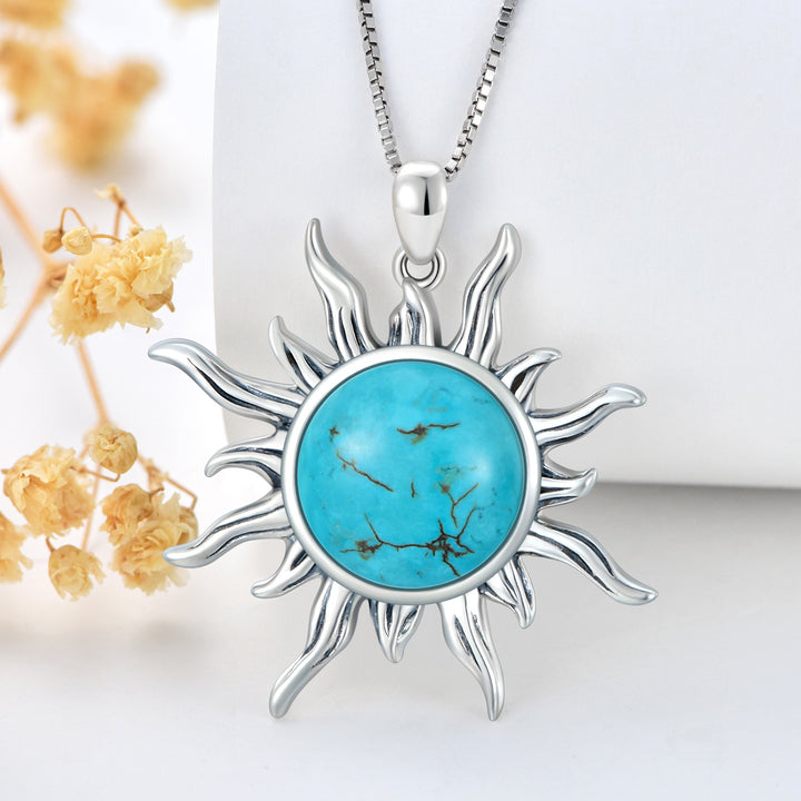 Sterling Silver Turquoise Sun Pendant Necklace for women
