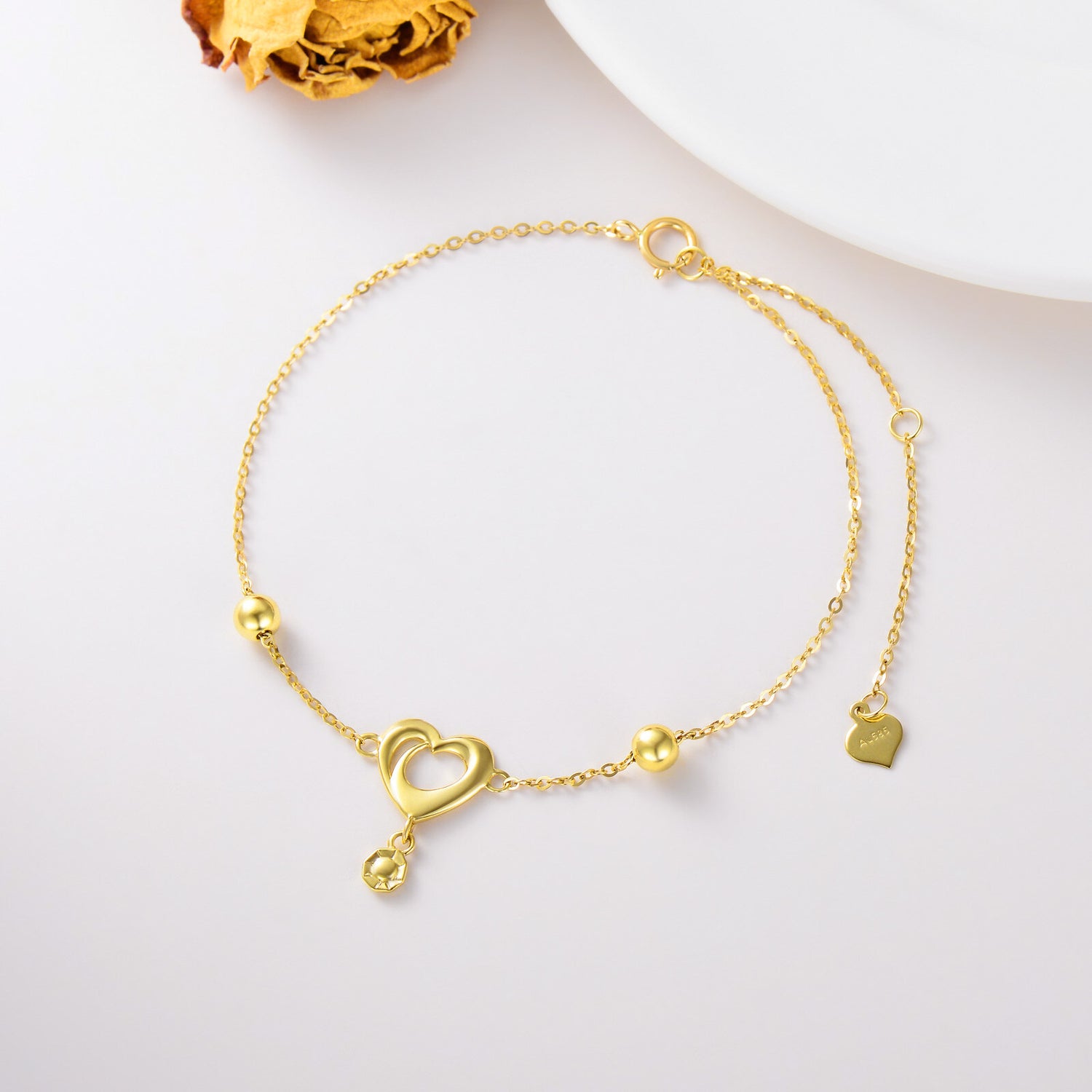This 14K Gold Heart Charm Bracelet by YFN is a stone-free charm bracelet for the modern woman, embodying timeless elegance and minimalism. Crafted from durable 14K Gold, the heart charm symbolizes love and connection. Perfect for layering or wearing solo, this versatile piece complements any outfit, offering a sleek, polished shine that embodies sophistication and simplicity.