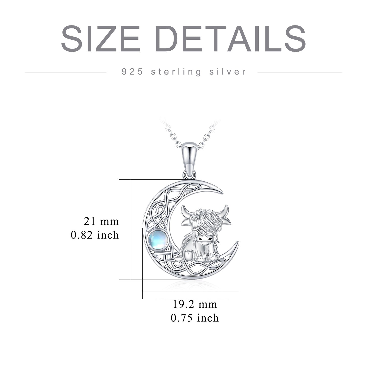 Sterling Silver Circular Moonstone Cow With Celtic Knot Moon Pendant Necklace For Women