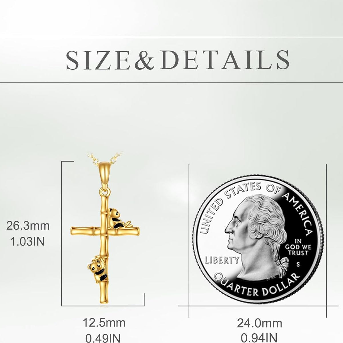 14K Gold Panda & Bamboo & Cross Pendant Necklace