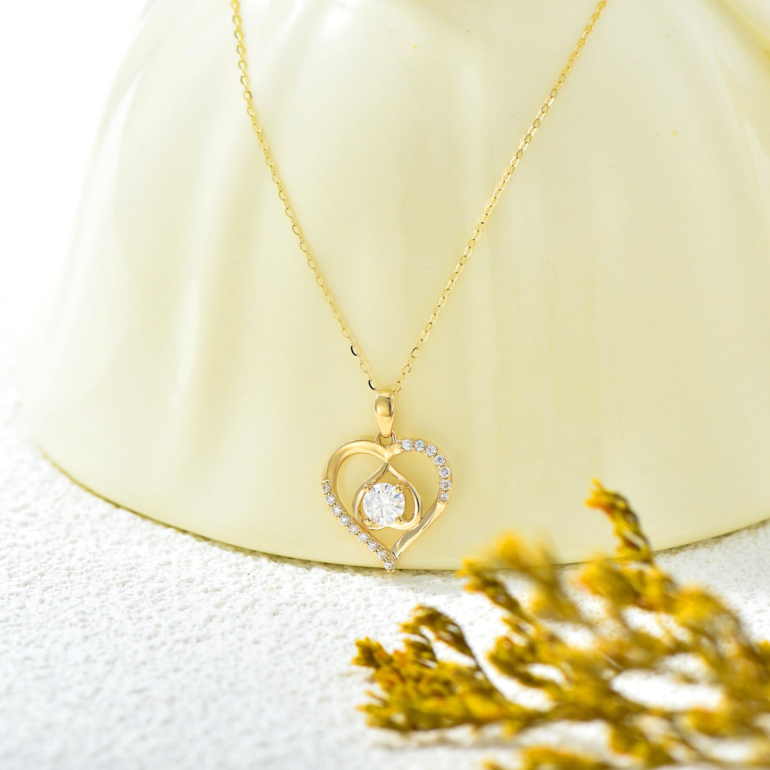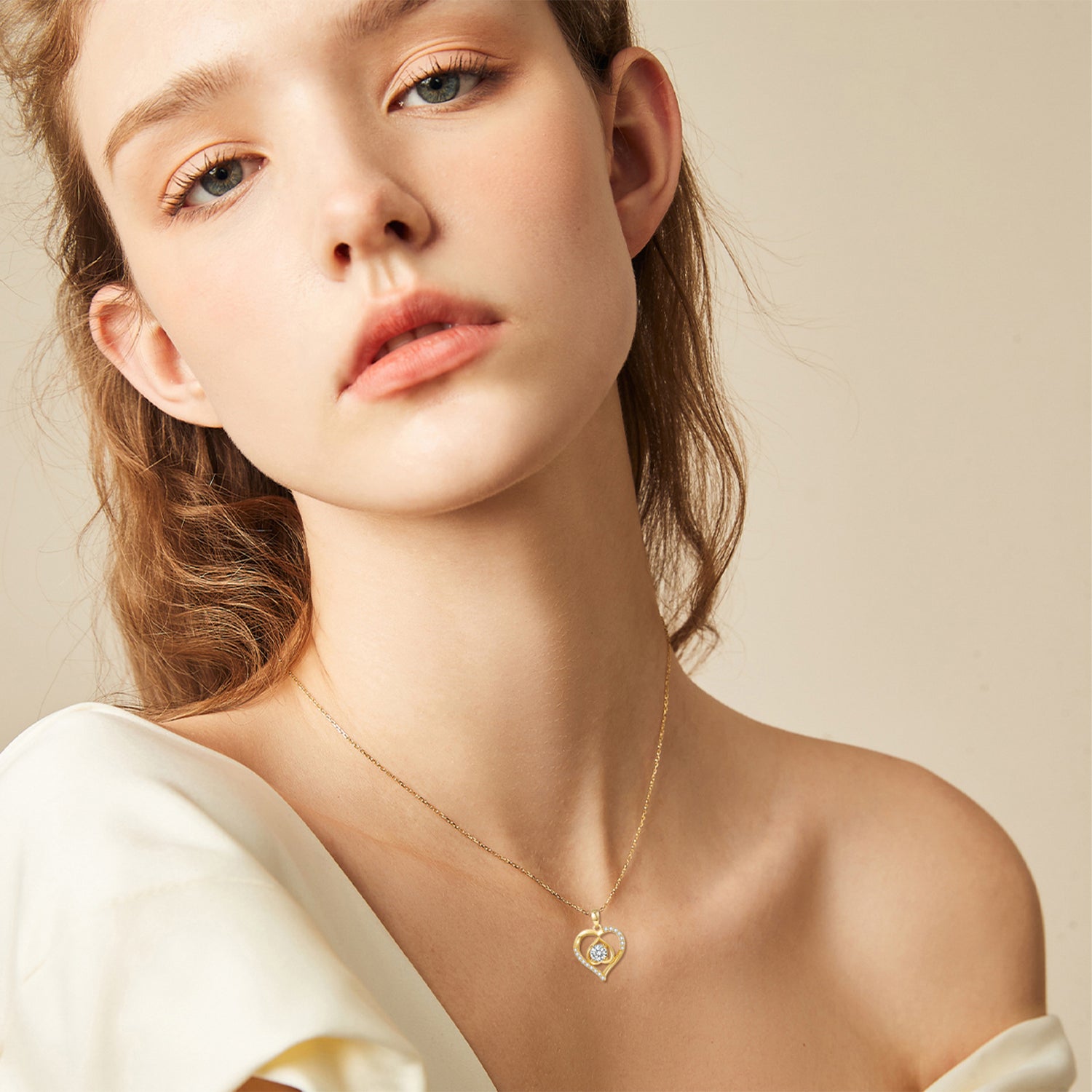This 14K Gold Round Moissanite Heart Pendant Necklace by YFN captures a sense of luminous romance through its radiant heart-shaped Moissanite centerpiece. The design pairs timeless elegance with a contemporary sparkle, allowing the pendant to shine with exceptional brilliance as it rests gracefully against the skin. Its heart motif symbolizes affection and devotion, making it a meaningful piece to gift or cherish personally. Delicate yet refined, the necklace transitions beautifully from everyday wear to more elevated occasions, offering enduring charm and a touch of luxury for any ensemble.
